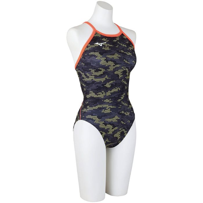 MIZUNO SWIM 過季促銷 EXER SUITS 女泳衣 連身中叉泳衣 日本製 N2MAA77193 黑x綠橘XS 過季促銷,請先詢問庫存|S 過季促銷,請先詢問庫存|M 過季促銷,請先詢問庫存Swimming Attireisport愛運動商城