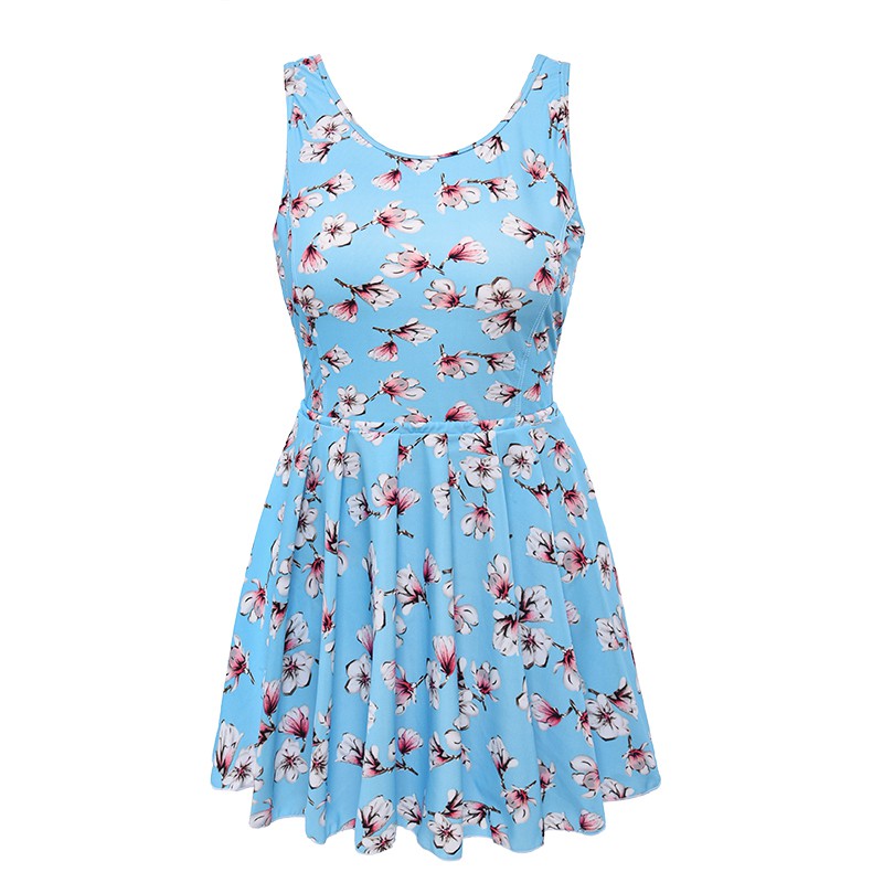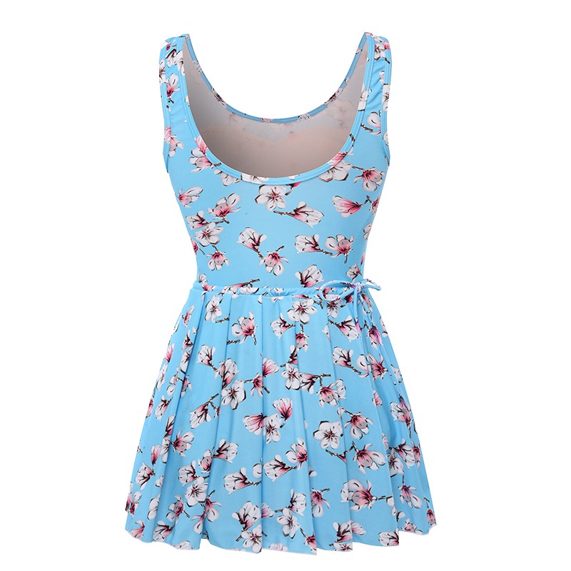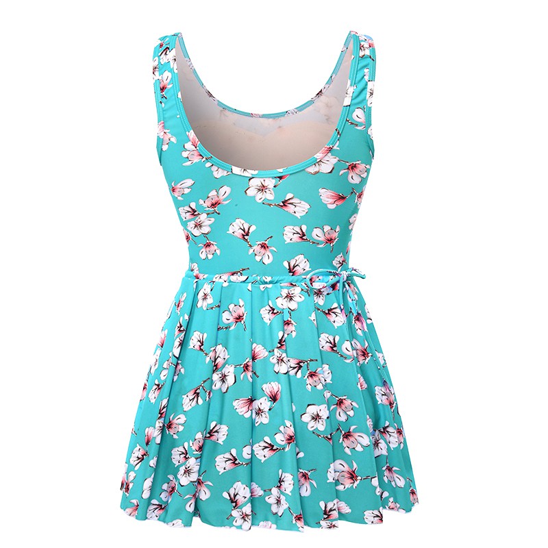 heatwave熱浪泳衣女花朵連身韓國ins印花少女保守遮肚顯瘦裙式連體游泳裝綠色L號|綠色XL號|綠色2XL號|藍色L號|藍色XL號|藍色2XL號Swimming AttireHeatwave熱浪泳衣官方旗艦店