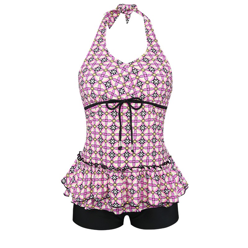 heatwave熱浪兩截式分體泳衣女保守顯瘦遮肚平角游泳衣性感時尚掛脖泳裝橘色M號|橘色L號|橘色XL號|橘色2XL號|粉色M號|粉色L號|粉色XL號|粉色2XL號Swimming AttireHeatwave熱浪泳衣官方旗艦店