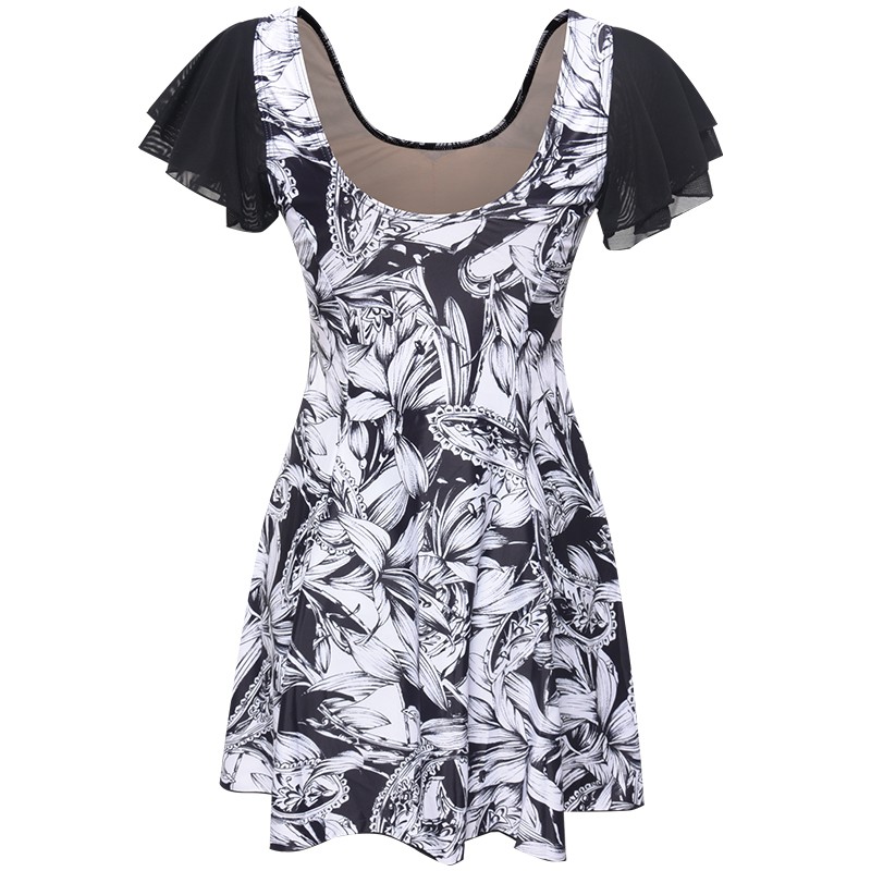 heatwave熱浪泳裝黑白印花連身保守遮肚顯瘦裙式大碼泳衣L|XL|2XL|3XLSwimming AttireHeatwave熱浪泳衣官方旗艦店