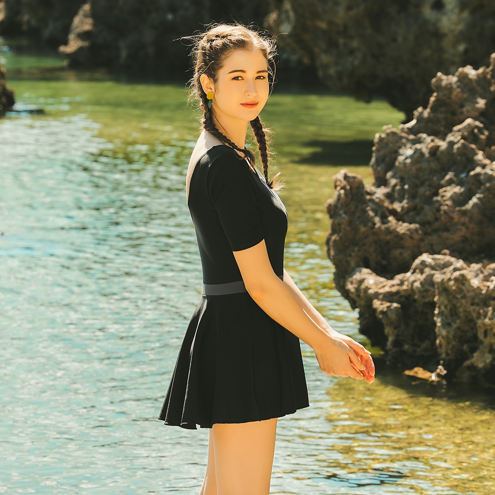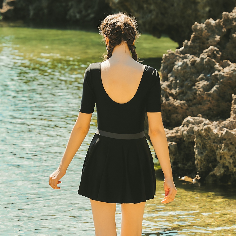 Heatwave熱浪 女士短袖連身泳衣新款拼色前拉鍊裙式專業游泳館專用大碼保守顯瘦泳裝黑色,M|黑色,L|黑色,XL|黑色,2XL|黑色,3XLSwimming AttireHeatwave熱浪泳衣官方旗艦店