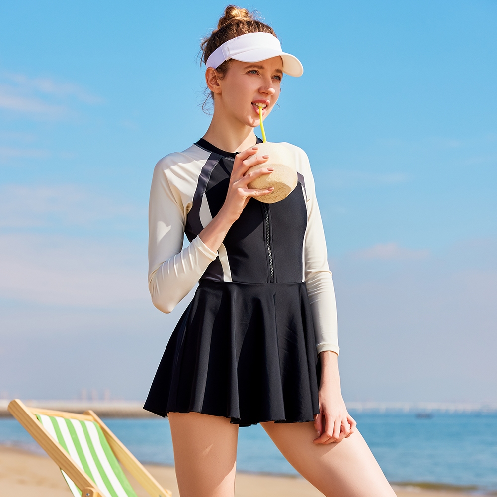 Heatwave熱浪 泳衣連身裙女款前拉鍊新款長袖防曬高級感專業大碼游泳館專用泳裝黑色,M|黑色,L|黑色,XL|黑色,2XL|黑色,3XLSwimming AttireHeatwave熱浪泳衣官方旗艦店