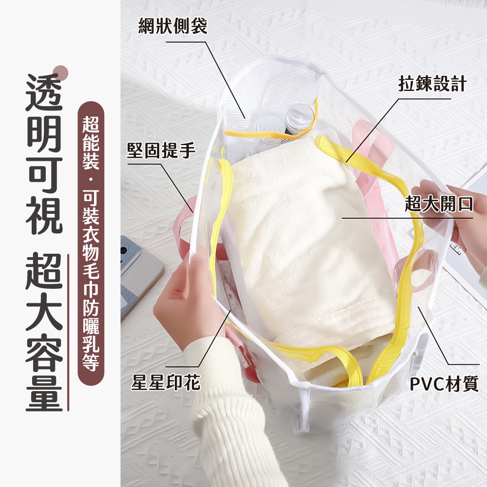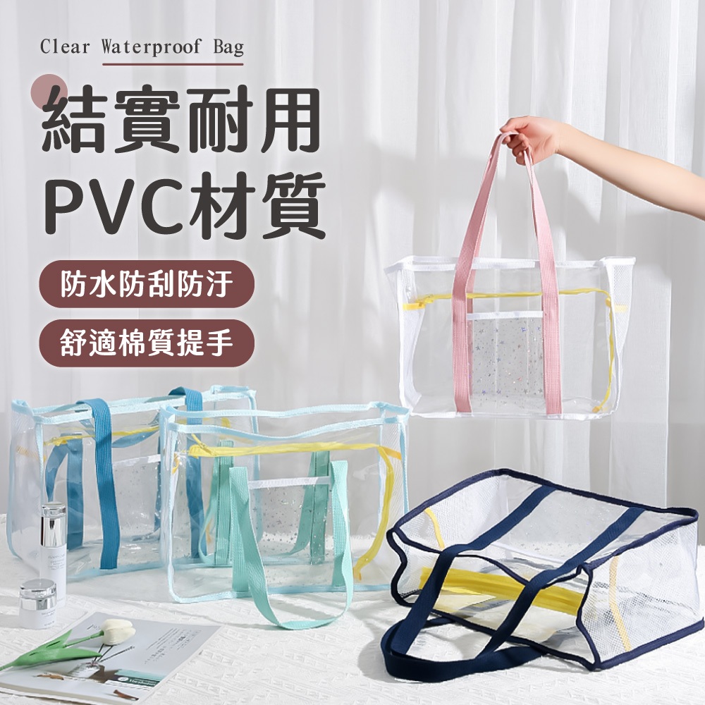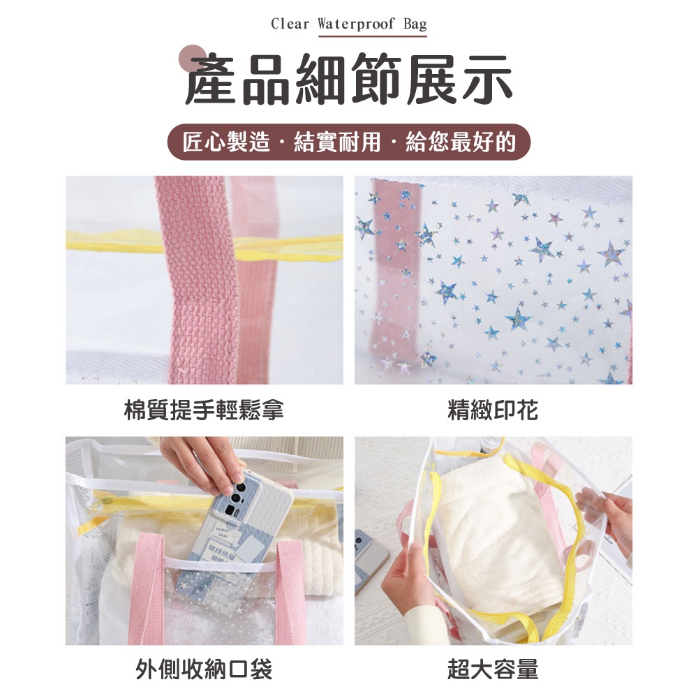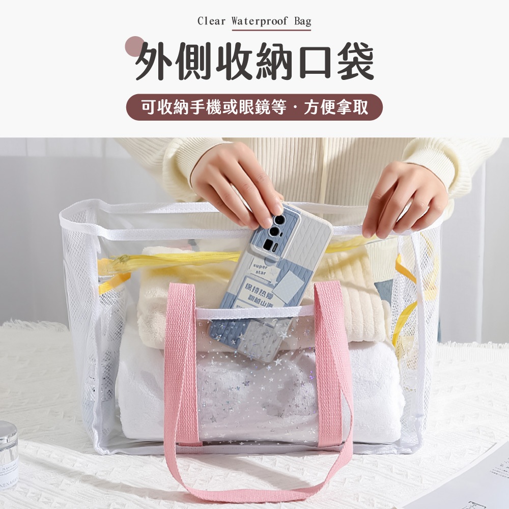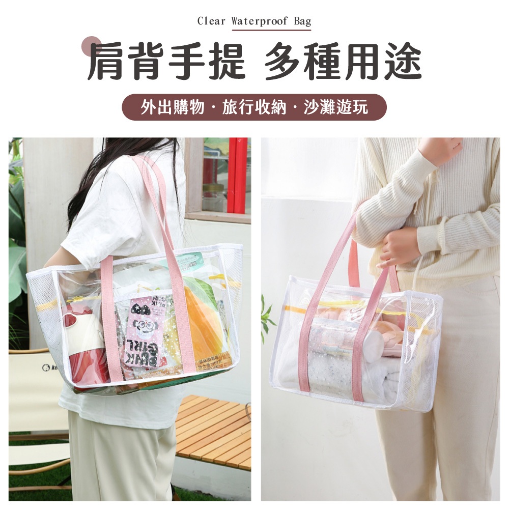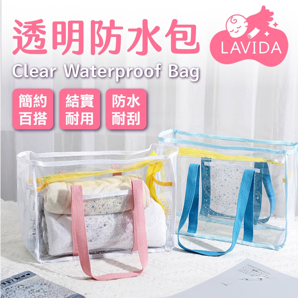 【LAVIDA嚴選】透明防水包 超大容量 乾濕分離包 防水提袋 透明提袋 防水包 防水袋 游泳包 游泳袋 沙灘包藍色|藏青|粉Dry BagsLAVIDA 育兒好好玩!