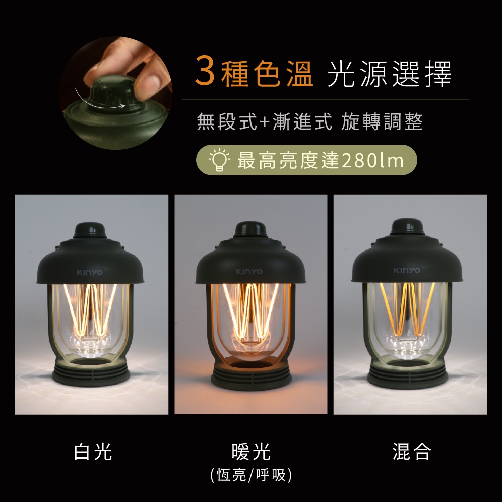 【KINYO】玩轉氣氛LED露營燈 (CP)360度照明 續航40H 吊掛桌立 IPX6防水 Type-C USB|露營
