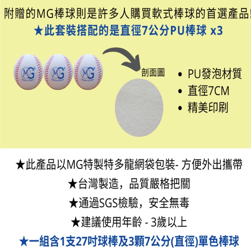 MACRO GIANT 27吋球棒套組+3顆棒球 安全無毒棒球 pu發泡 兒童節禮物紅|藍|黃|綠|橙Baseball & SoftballMACRO GIANT 休閒玩具品牌