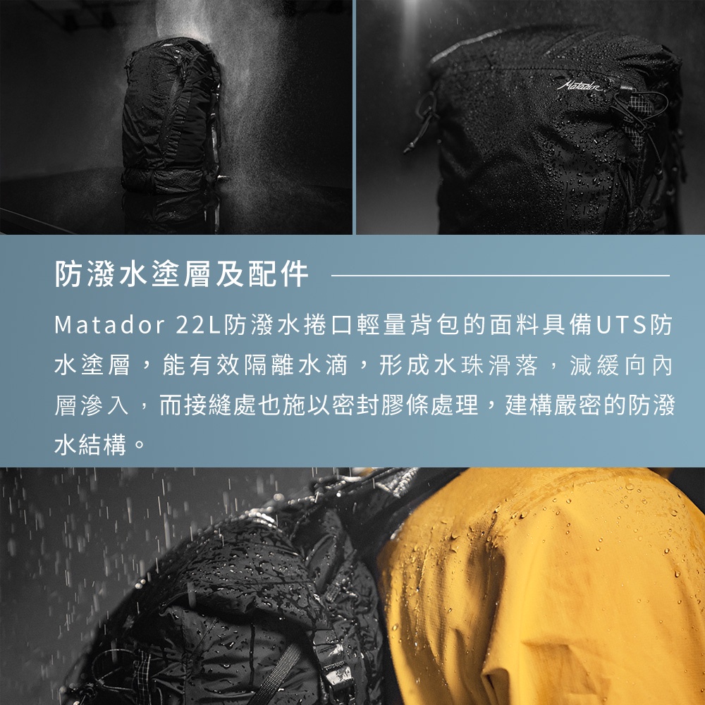 Matador 鬥牛士 FreeRain 22L防水捲口輕量背包黑色Shoe BagsMatador鬥牛士官方旗艦店