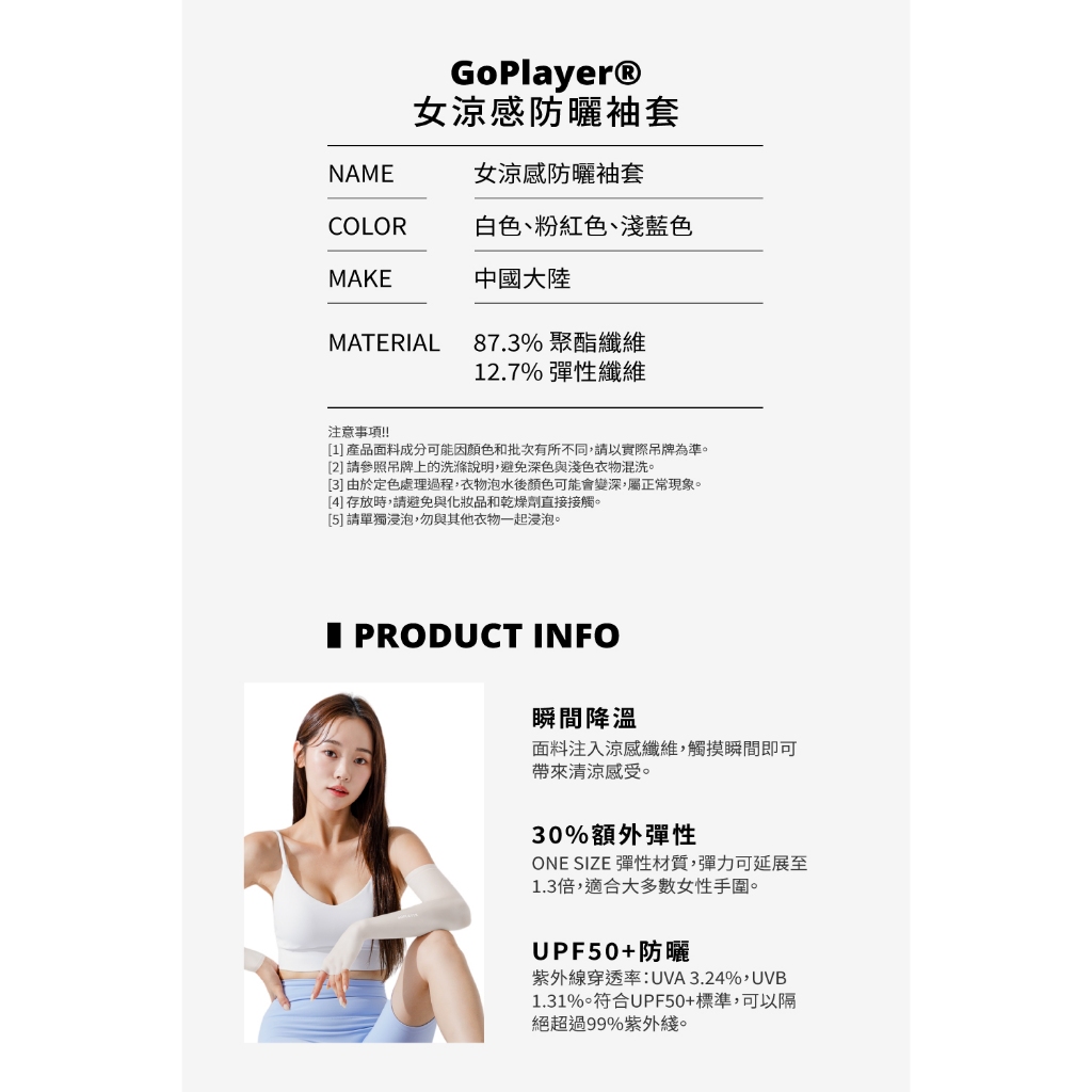 【GoPlayer】女涼感防曬袖套 (抗紫外線 防曬袖套 輕薄涼感透氣)白|淺藍|粉紅OthersGoPlayer高爾夫