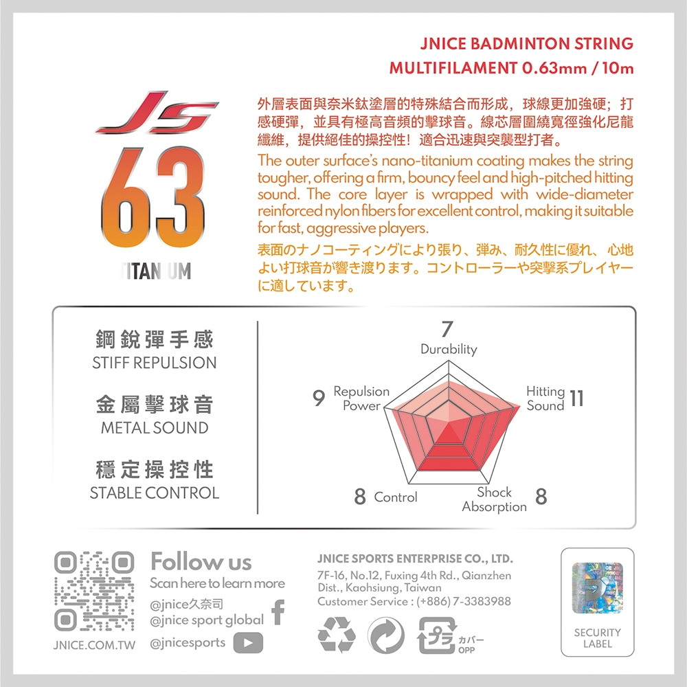 【JNICE久奈司】擊球音 JS-63TI 羽毛球拍線 羽球拍線 羽球線(白/螢光黃/粉紅)白|螢光黃|粉BadmintonJNICE 久奈司旗艦店 羽球拍|羽球|匹克球|匹克球拍|運動服飾|球拍袋