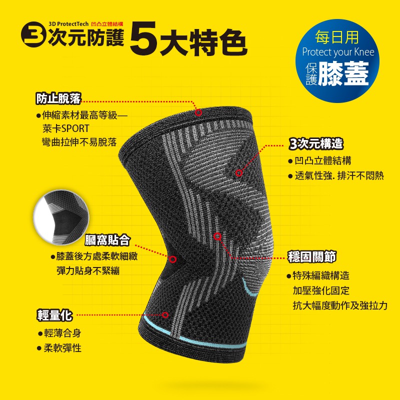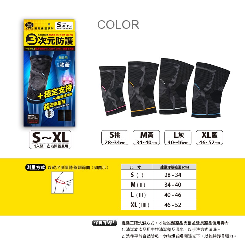 《瑪榭》3次元防護護膝-單支 / MIT台灣製/護膝/運動護具/護膝套/防護/0091731S桃-單支|M黃-單支|L灰-單支|XL藍-單支Gym Protective GearsMarCella瑪榭 官方旗艦店