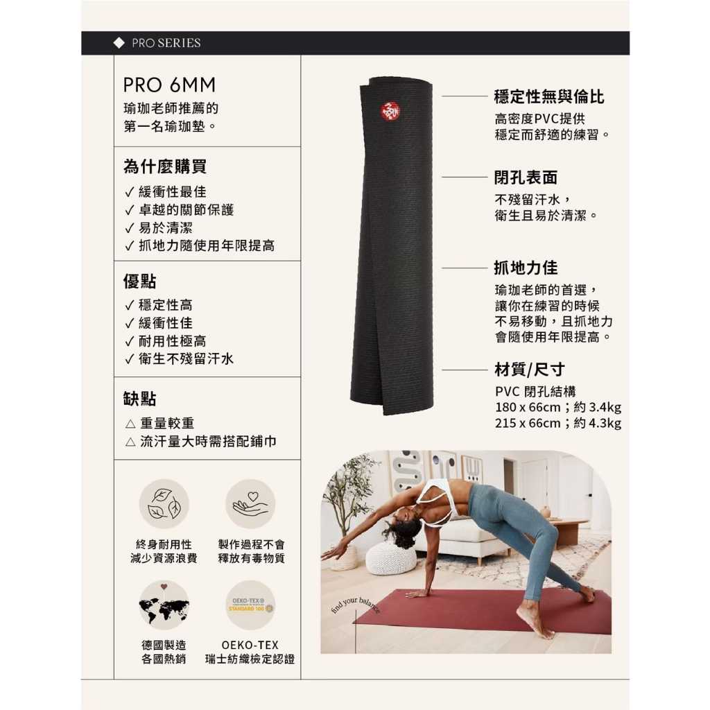 【Manduka原廠正品】PRO Mat 瑜珈墊 6mm 加長版 – 多色可選 免運費Midnight|Verve (Red)|Black|Black Sage (Green)Yoga & PilatesMANDUKA 品牌旗艦館