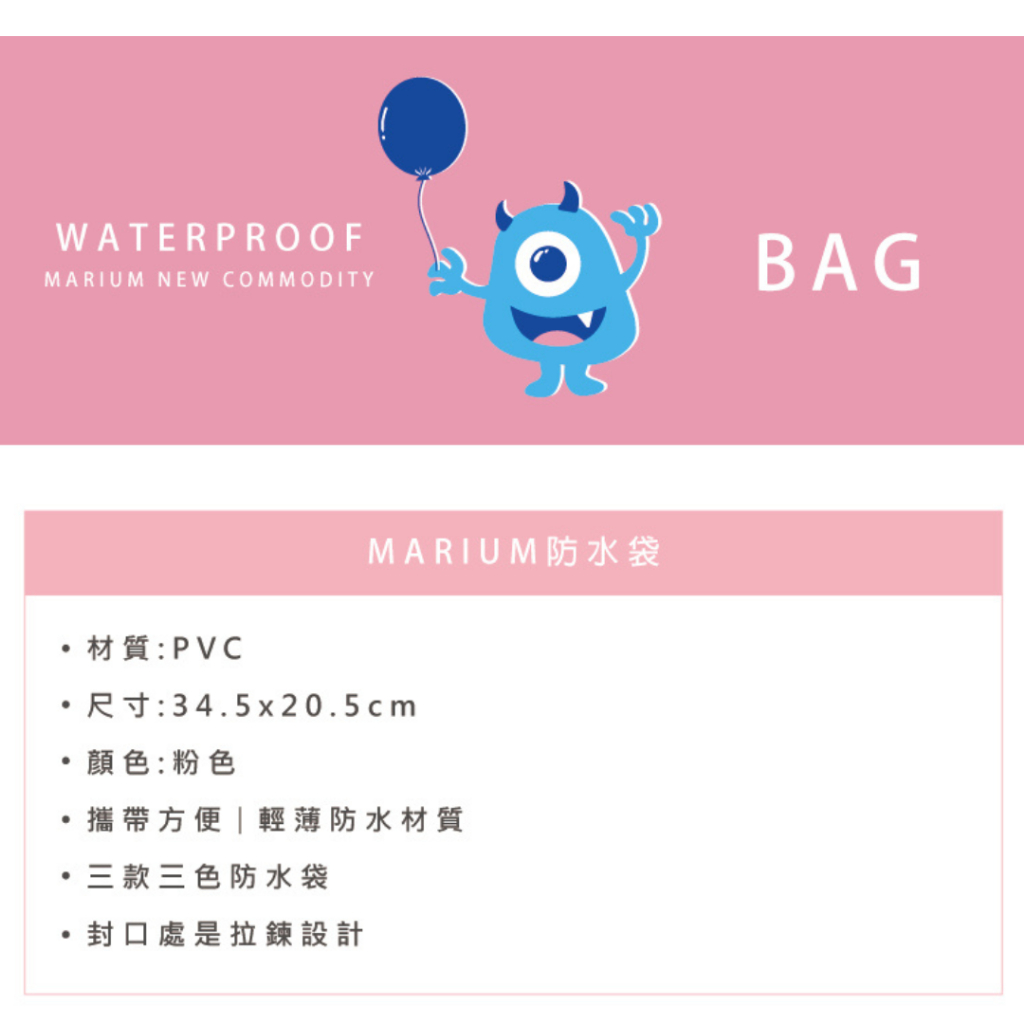 MARIUM 乾濕分離防水袋 拉鍊式防水袋 日月潭防水袋 乾濕分離 拉鍊式防水袋素色LOGO,粉色|素色LOGO,黃色|素色LOGO,藍色|可愛動物,粉色|可愛動物,黃色|可愛動物,藍色|小怪獸,粉色|小怪獸,黃色|小怪獸,藍色Dry BagsMARIUM游泳用品 官方商城