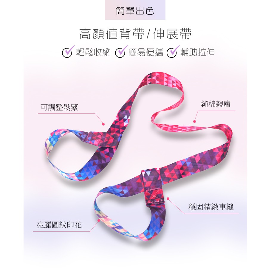 【LOTUS】多功能瑜珈墊伸展帶收納背帶 拉筋伸展帶 瑜珈墊收納背帶彩虹馬賽克Yoga & PilatesLOTUS FITNESS