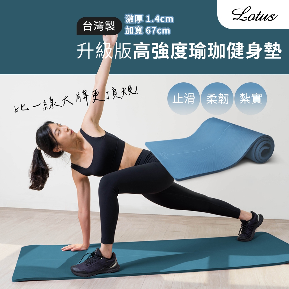 LOTUS 台灣製升級版加寬67公分高強度瑜珈健身墊14mm P Mat 高強度間歇訓練墊 橡膠瑜珈墊 宅配免運湛藍海洋Yoga & PilatesLOTUS FITNESS