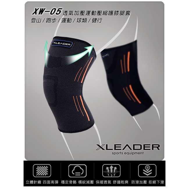 【Leader X】XW-05 透氣加壓 運動壓縮護膝腿套 1只入 | 防護升級 膝部防護 (台灣24h出貨)黑橘_XL|黑橘_S|黑橘_M|黑橘_LGym Protective GearsLeader Sports 官方直營店