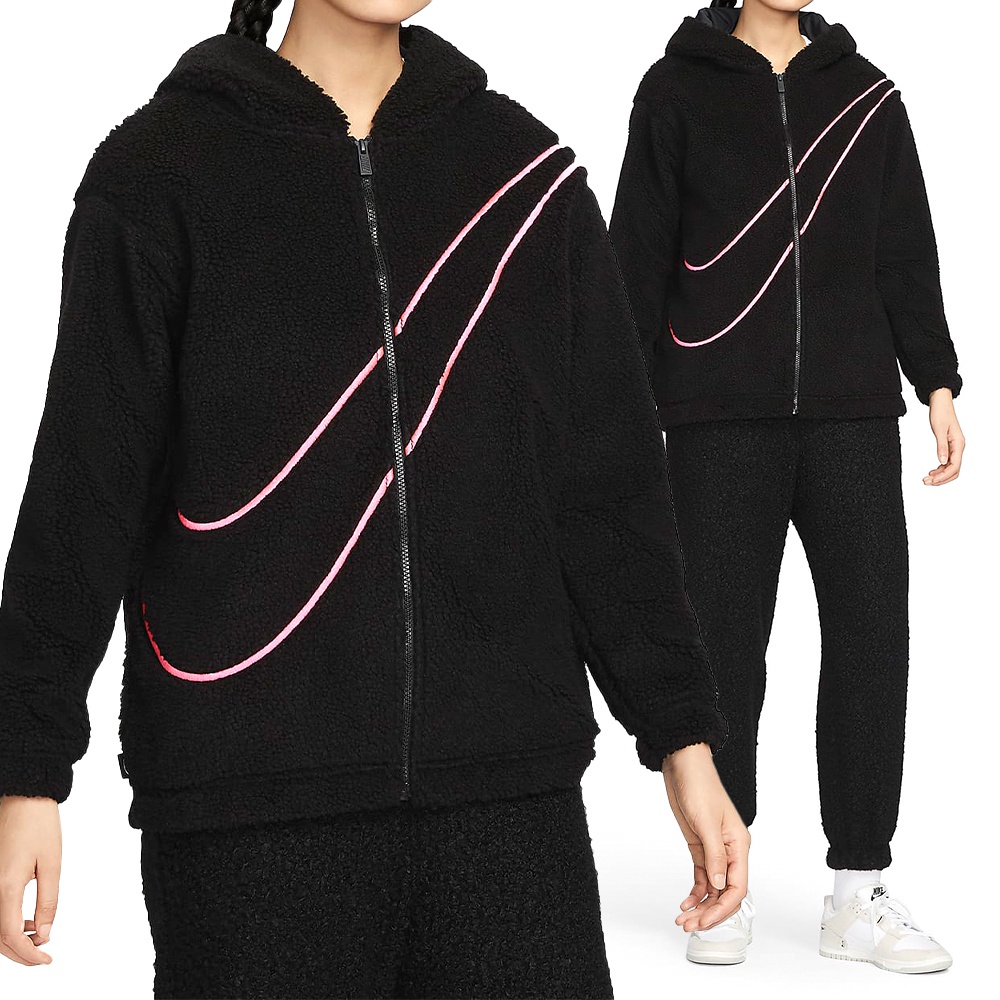 Nike NSW 女 黑 刺繡 LOGO 寬鬆 保暖 毛毛 連帽 外套 長袖 FZ6536-0102XS|XS|M|XL|S|L|2XL|3XL|4XLJacketsJOY SPORTS 歡樂運動