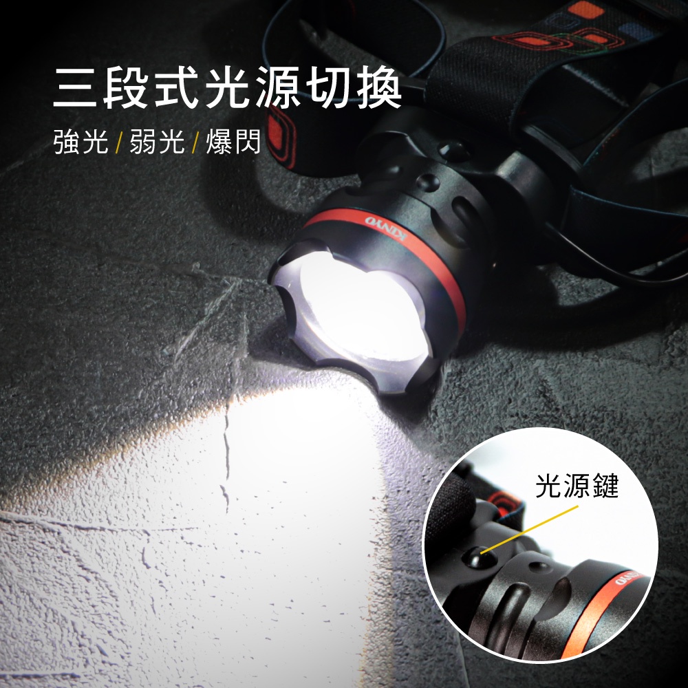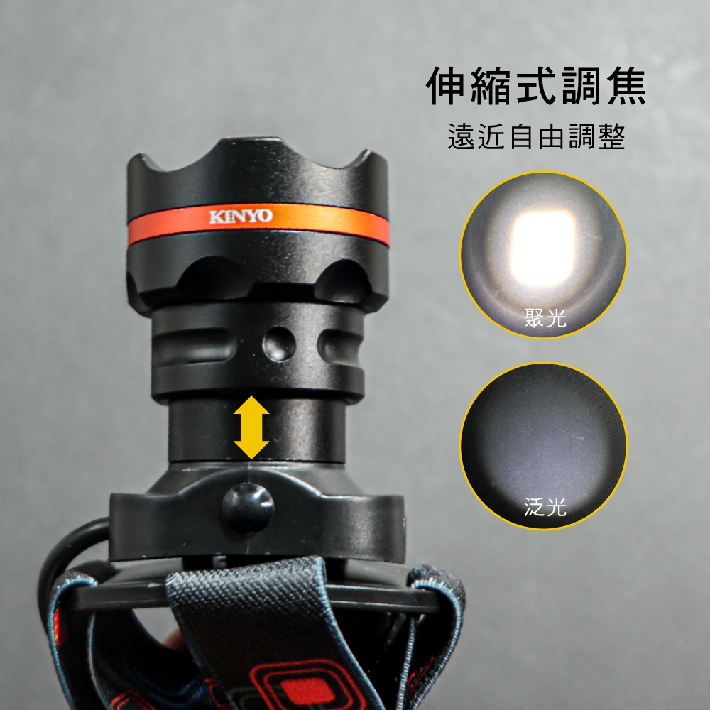 〖KINYO〗 P50強光變焦頭燈 (LED) 充電式 三段光源 IPX5防水 照射1000M | 露營 登山LED724 頭燈Camping & HikingKINYO官方旗艦店_家電館