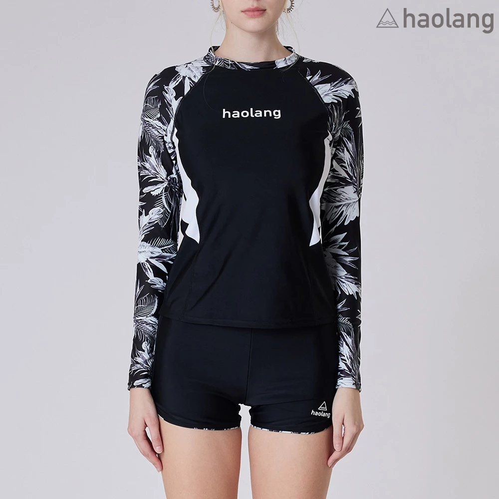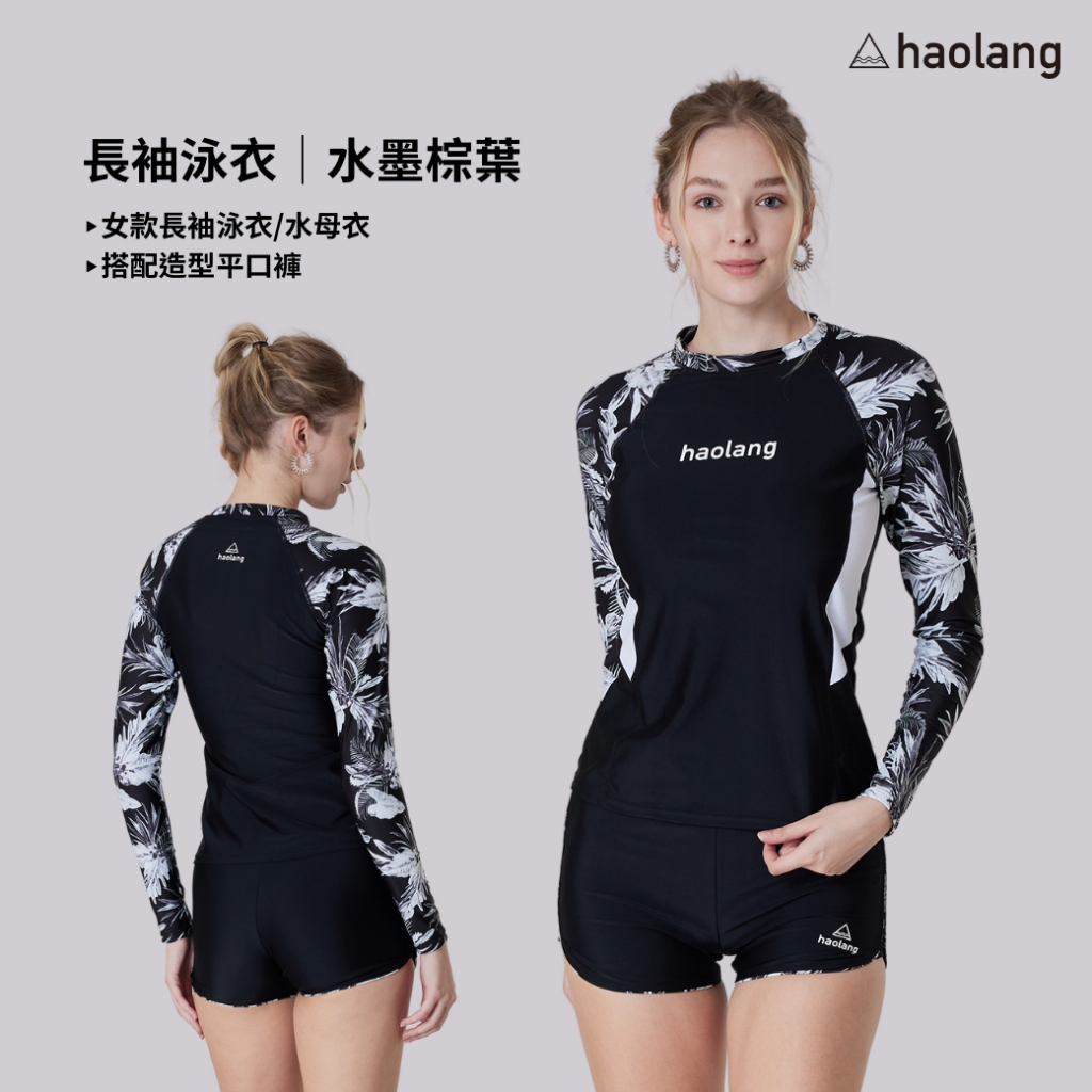 Haolang 水墨棕葉長袖泳衣(整套)/防曬/水母衣/海邊活動首選M|L|XL|2LSwimming AttireHaolang浩浪泳裝
