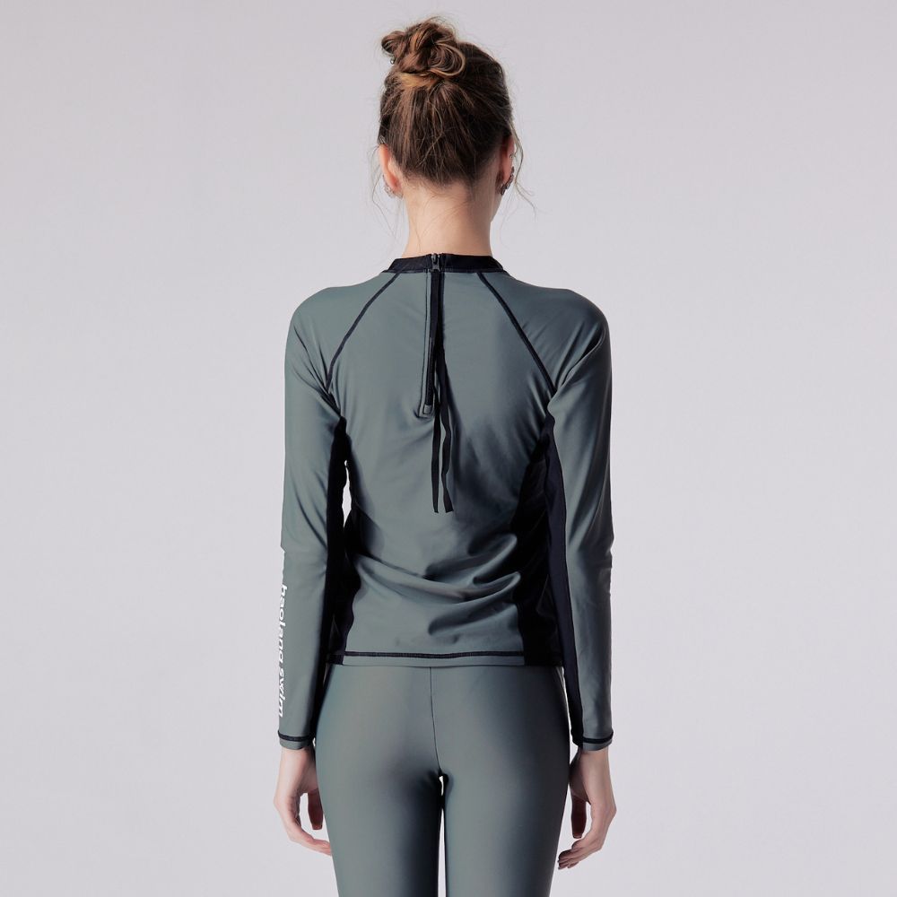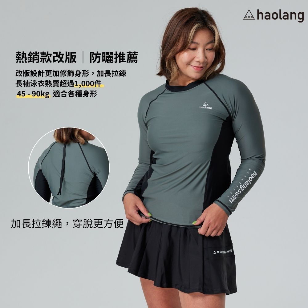 Haolang 炭灰綠女款長袖泳衣/大尺碼/長袖水母衣/長袖拼接設計/防曬修身上衣/游泳浮潛海邊必備M|L|XL|2L|3LSwimming AttireHaolang浩浪泳裝