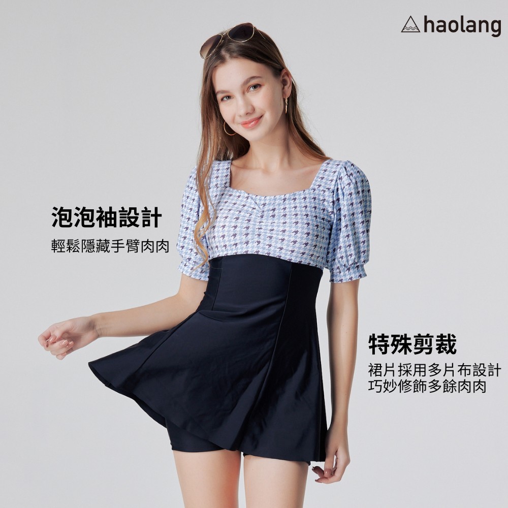 Haolang 千鳥格裙兩件式泳衣/大尺碼/修身/泡泡袖/特殊剪裁/保守L|XL|2L|3LSwimming AttireHaolang浩浪泳裝