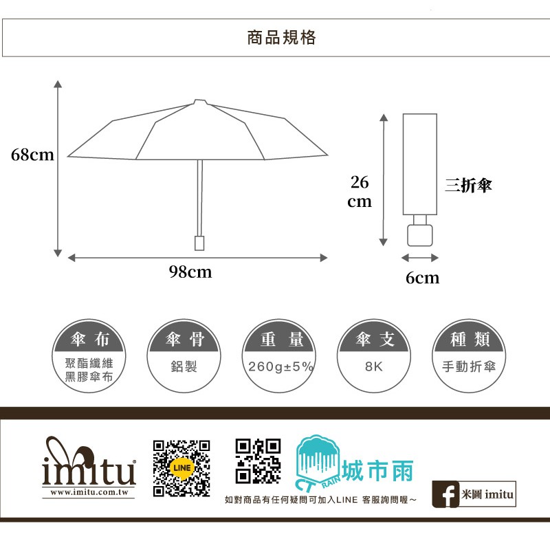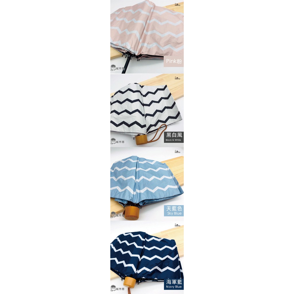 城市雨 波普風情 夏日 抗UV黑膠三折晴雨傘黑白條|粉PINK|天藍|海軍藍Umbrellasimitu 米圖