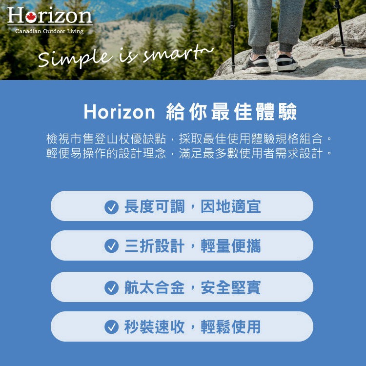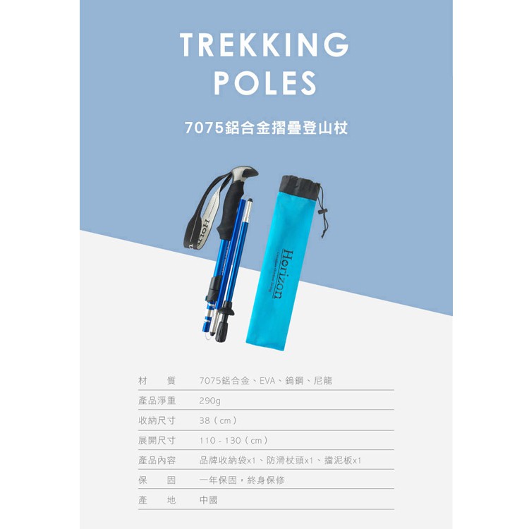 【Horizon天際線】最佳體驗登山杖,7075航太級鋁合金輕量折疊款 | 等粗杖身,支撐最穩固,總代理公司貨,終身保修