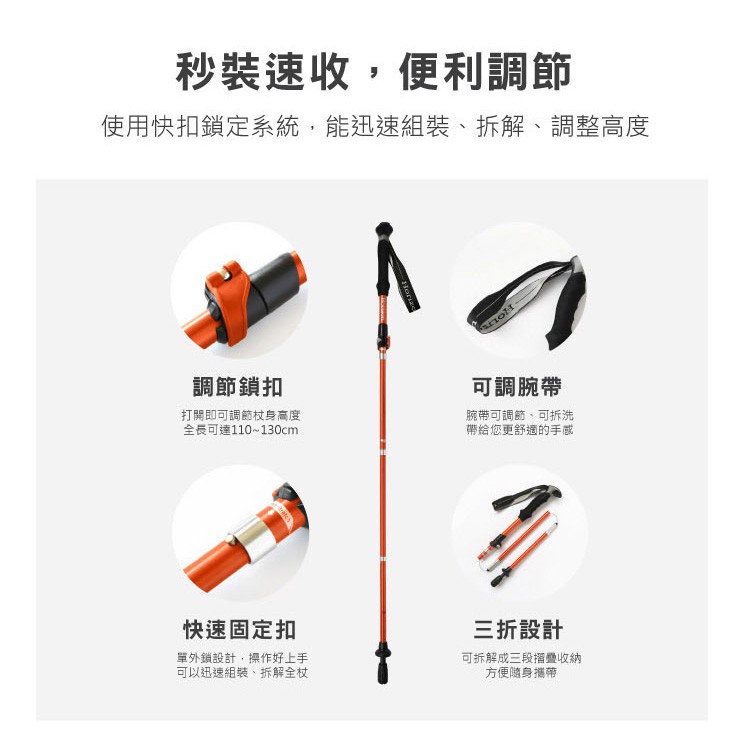 【Horizon天際線】最佳體驗登山杖,7075航太級鋁合金輕量折疊款 | 等粗杖身,支撐最穩固,總代理公司貨,終身保修艷陽橘(單根)|蒼穹藍(單根)|雍容綠(單根)|水墨白(單根)|鐵石黑(單根)|自選色備註,兩入組|蒼穹藍兩入組|黑登山杖兩入組|艷陽橘兩入組|雍容綠兩入組Camping & HikingICareU嚴選