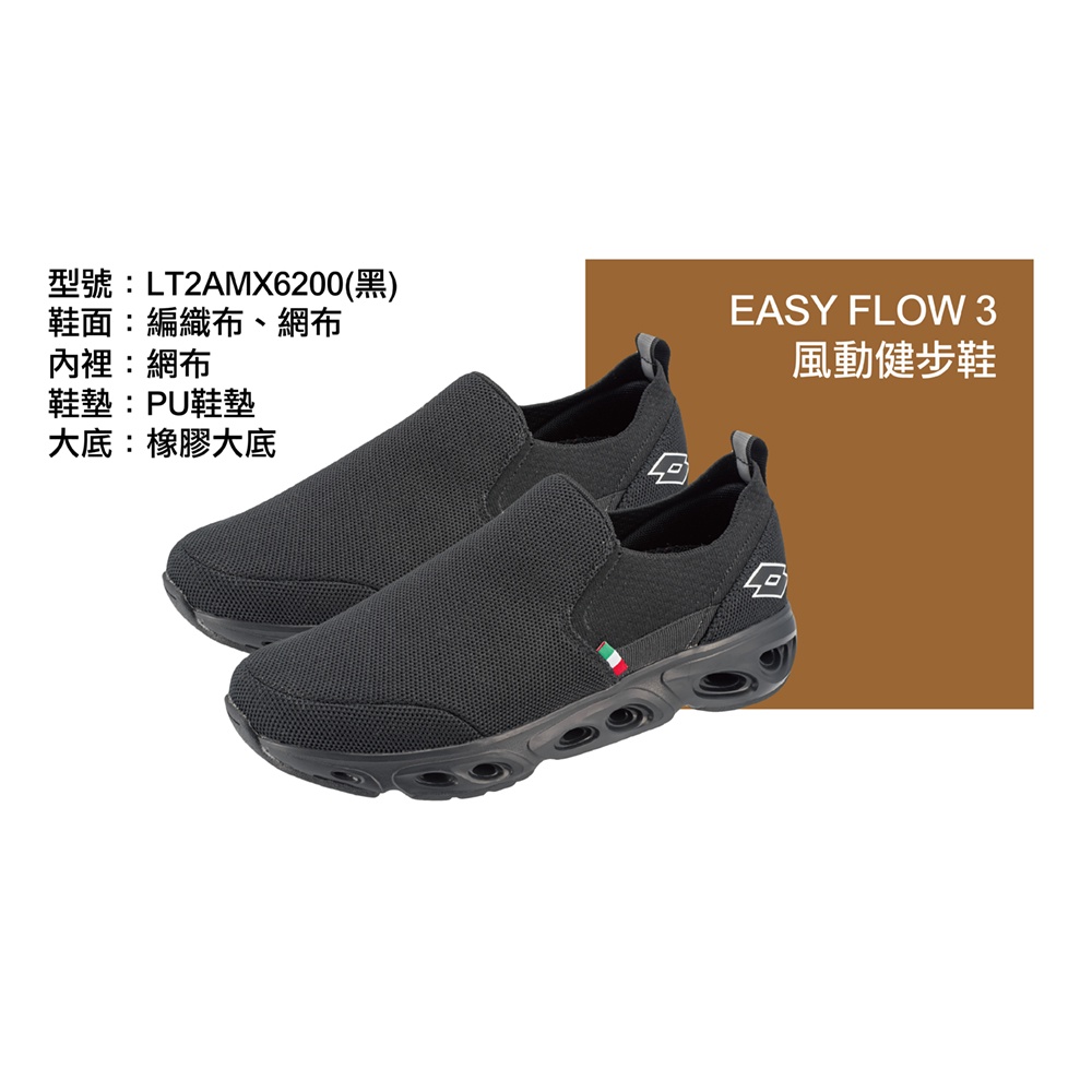 【LOTTO 義大利】男 EASY FLOW3風動健步鞋(黑-LT2AMX6200)25.5cm|26cm|26.5cm|27cm|27.5cm|28cm|29cmRunning ShoesLOTTO 樂得官方商城