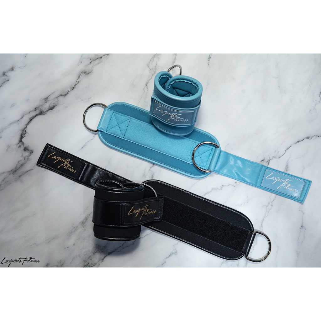 LEXPORTS 勵動風潮 / 重量訓練皮革腳踝綁帶/ 重量訓練 / 拉力帶 / 綜合訓練機/ 臀部/ 腿部 / 蜜桃臀奢華黑|糖果藍Gym Protective GearsLEXPORTS 勵動風潮 / 專業健身配件 重訓護具