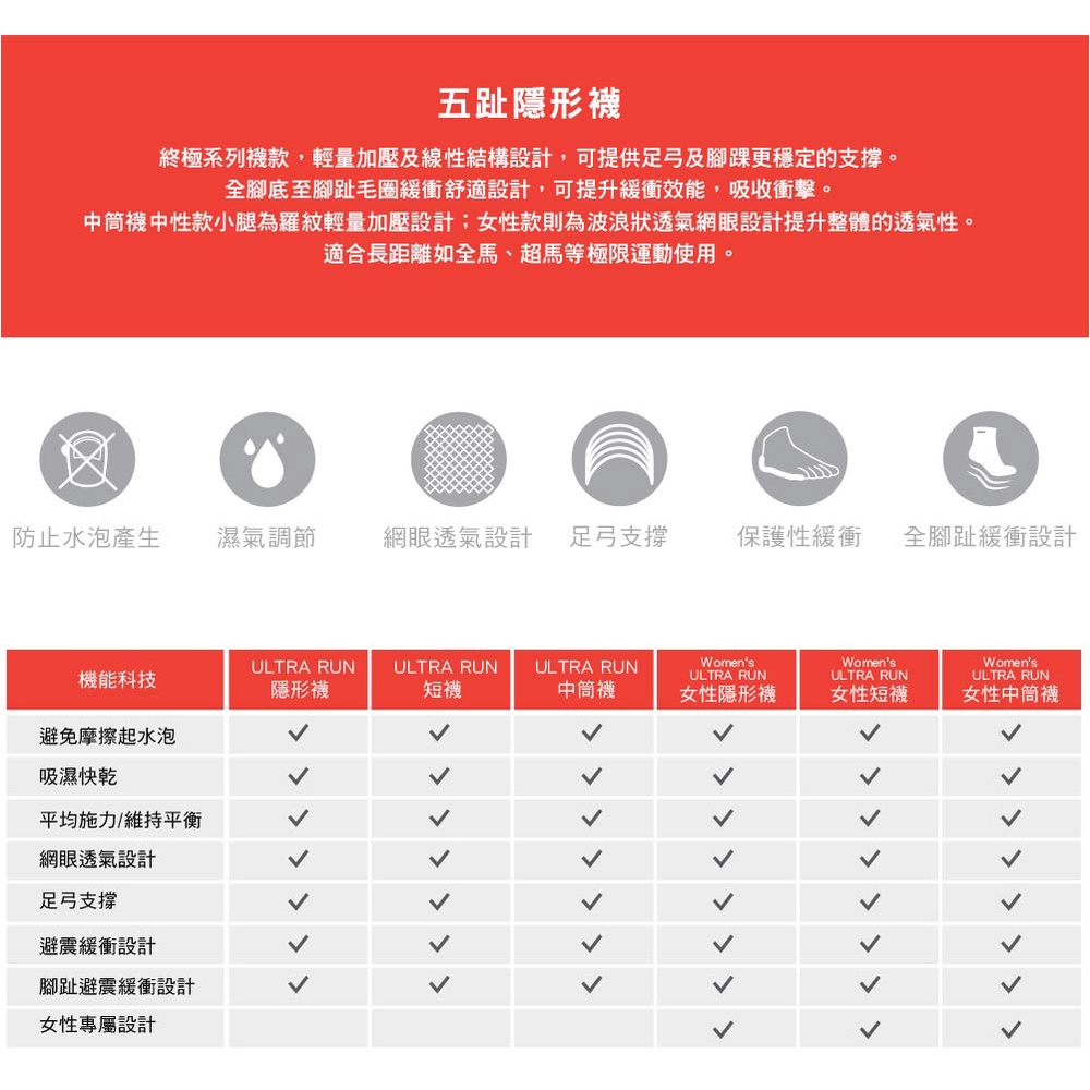 【injinji】Ultra Run終極系列五趾隱形襪 (火山紅) – NAA65 | 吸濕排汗 避震緩衝 馬拉松推薦襪