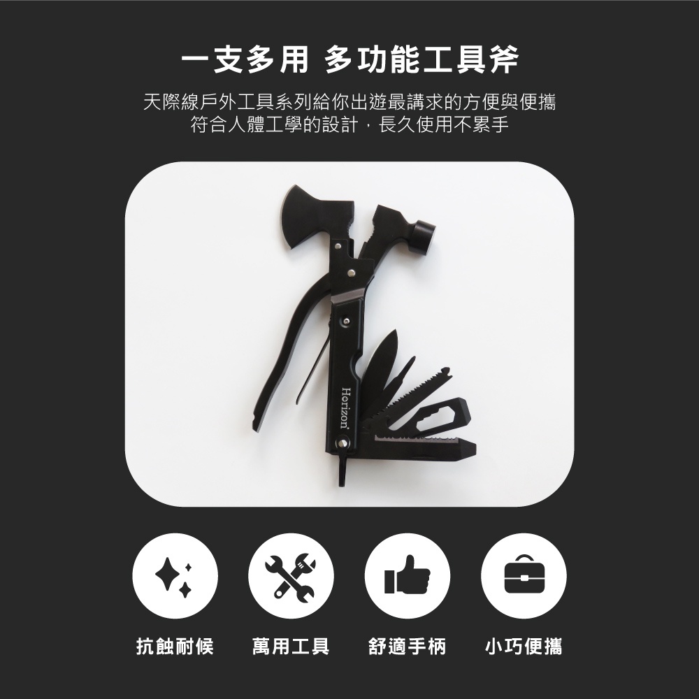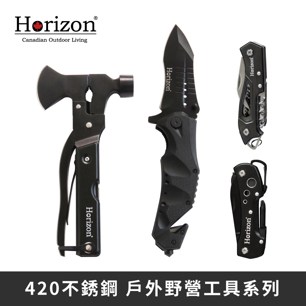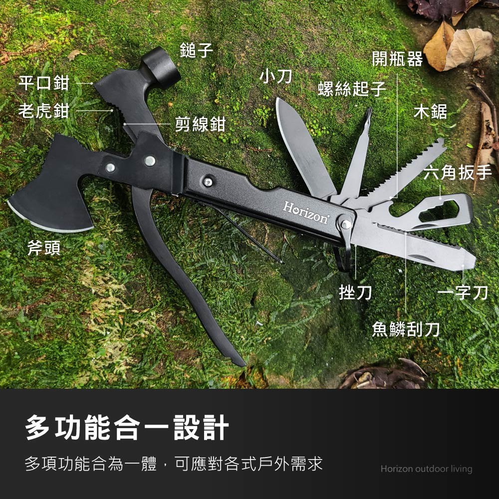【Horizon天際線】黑化野人野外求生刀斧工具組 多功能折疊刀 求生刀 露營刀 防身折刀 多功能斧頭