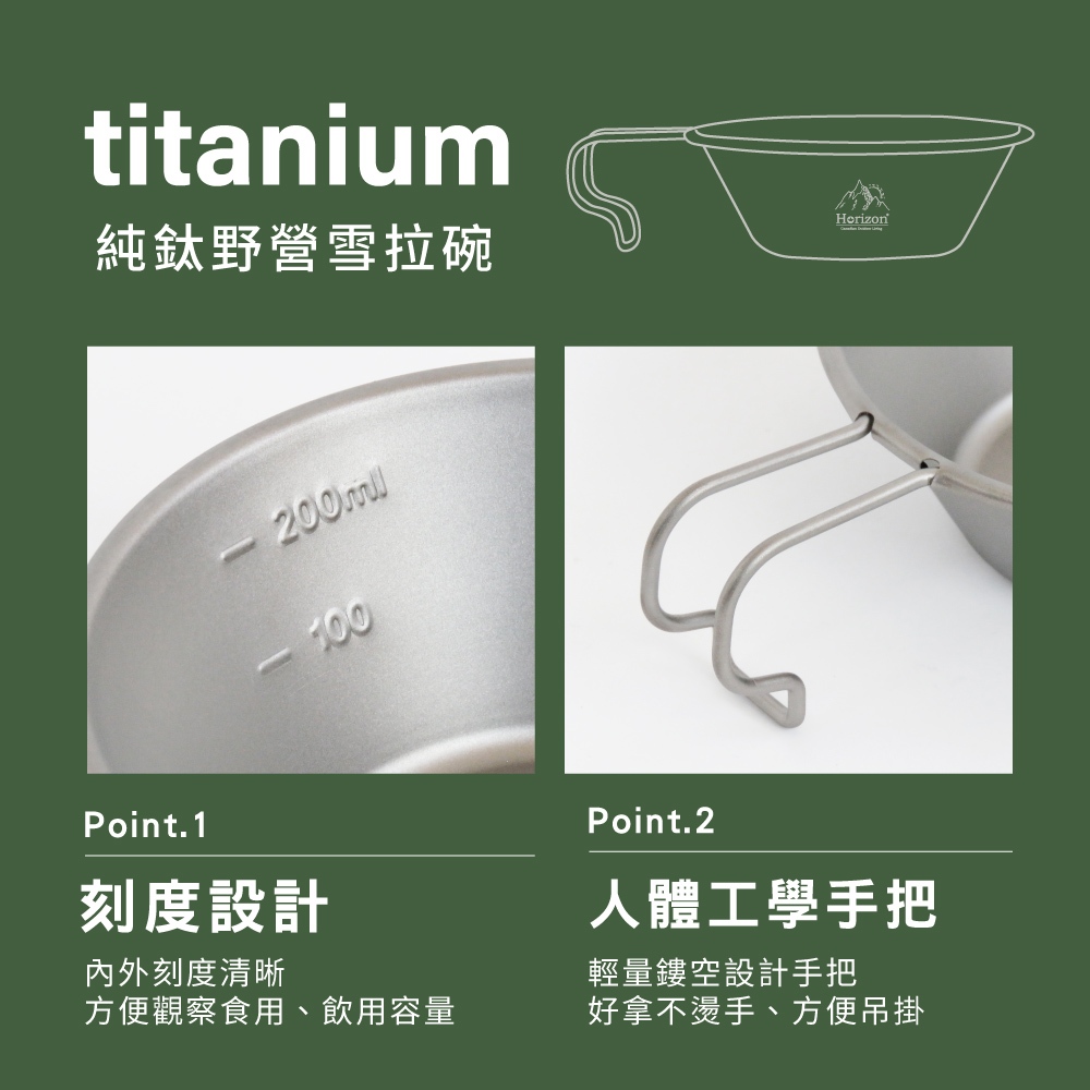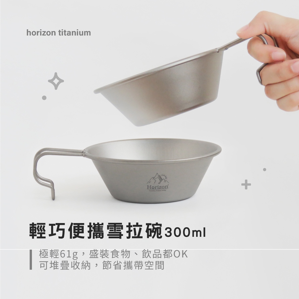 【Horizon 天際線 鈦輕量】純鈦雪拉碗300ml│露營杯碗、提耳碗│可直火使用│把手可掛於背包│可彼此套疊收納(蝦皮活動限定)雪拉碗300mlCamping & HikingICareU嚴選