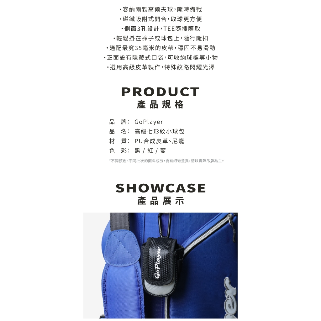 【GoPlayer】高級七形紋小球包-黑.紅.藍 (磁鐵吸附開合 可插TEE 可吊掛)黑|紅|藍GolfGoPlayer高爾夫