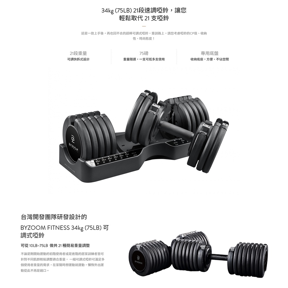 Byzoom Fitness 可調式啞鈴 34公斤 (75磅) 21段重量秒速調整組 速調啞鈴 一年保固 宅配免運34KG (75LB)Fitness EquipmentLOTUS FITNESS