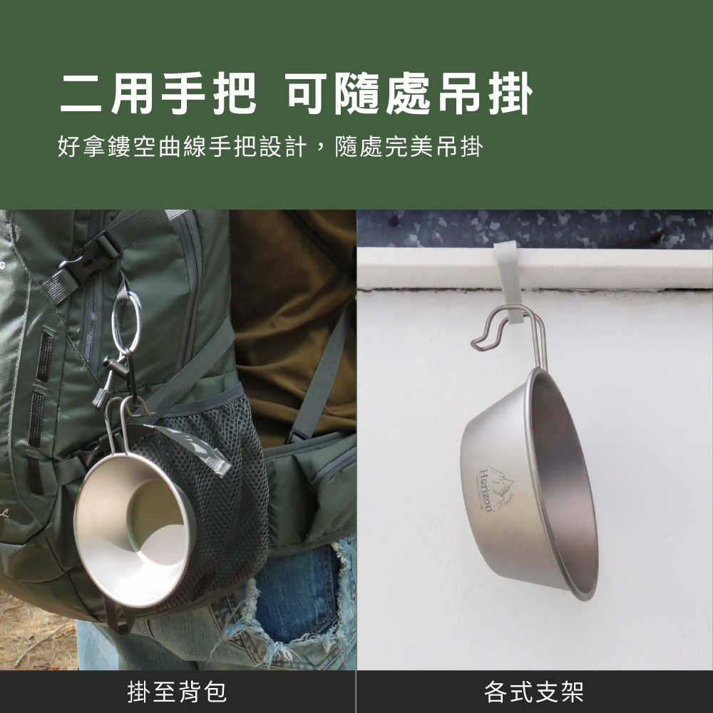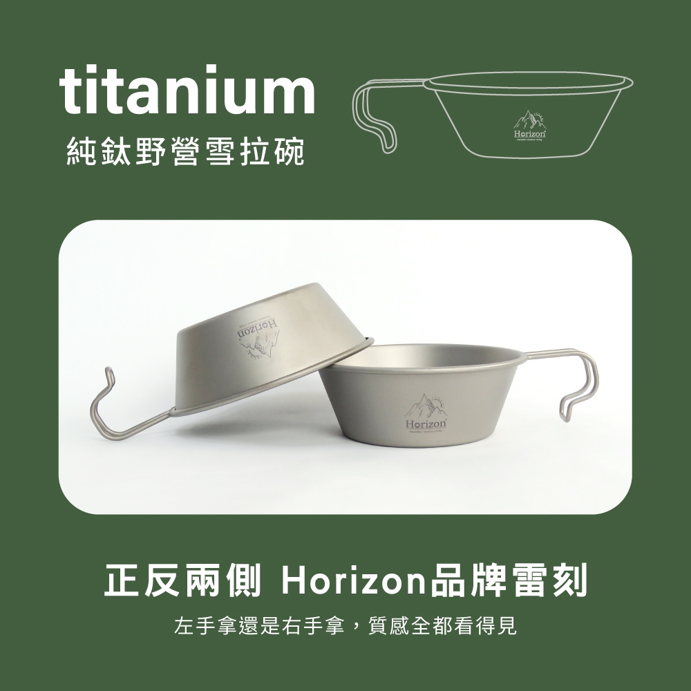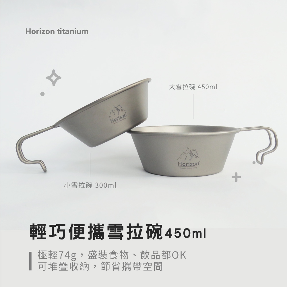 【Horizon 天際線 鈦輕量】純鈦雪拉碗450ml│露營杯碗、提耳碗│可直火使用│把手可掛於背包│可彼此套疊收納450ml(1個)|450ml(2個)Camping & HikingICareU嚴選