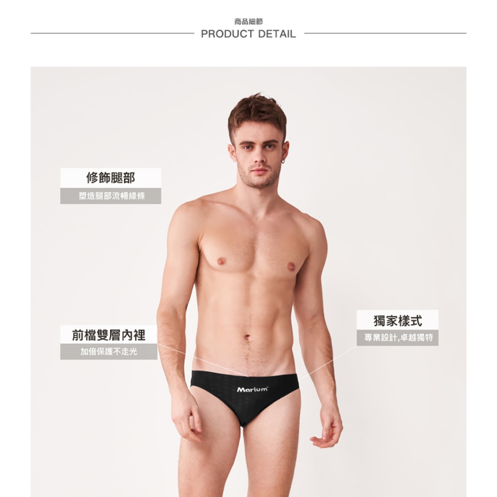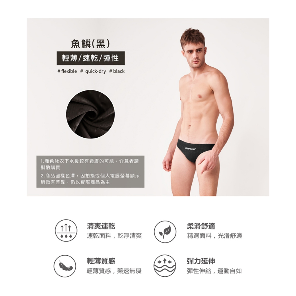 MARIUM 美睿 泳褲 競賽泳褲 三角泳褲 男生泳褲 游泳 素色 黑色 基本款 魚鱗