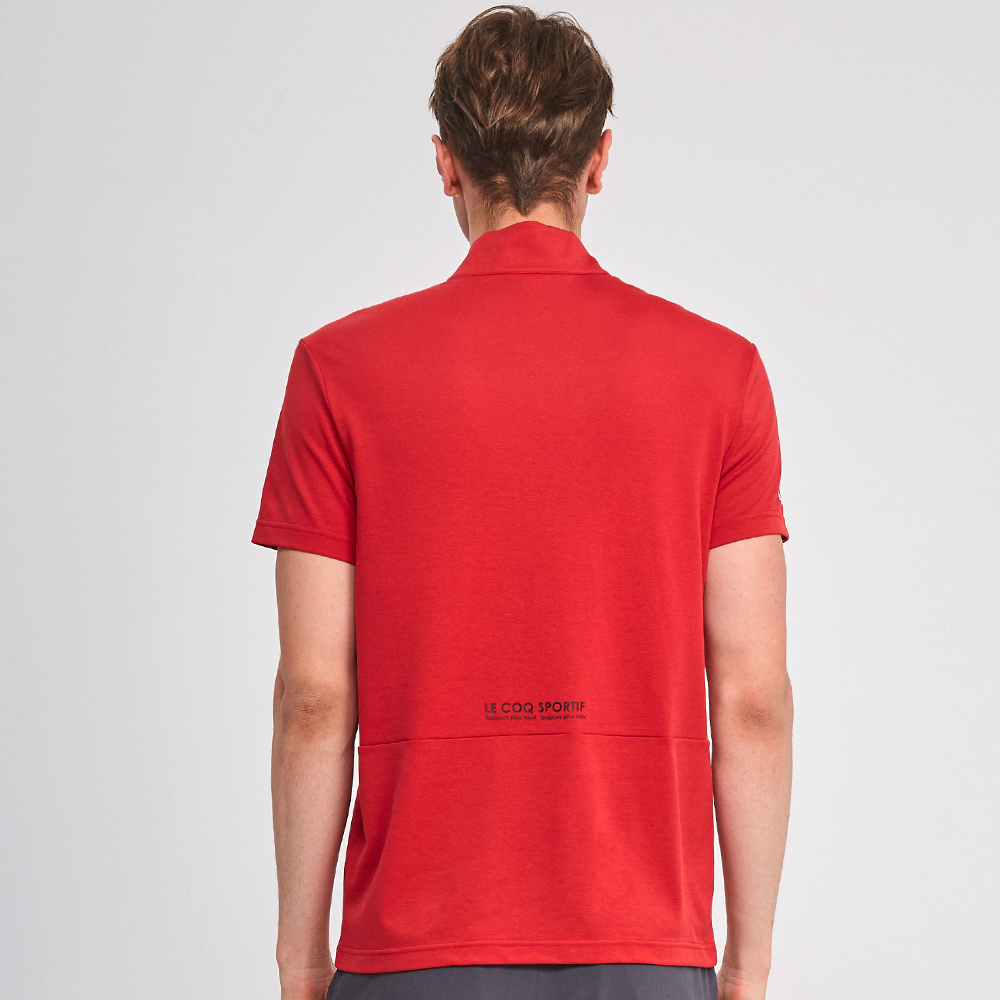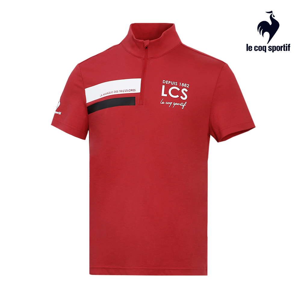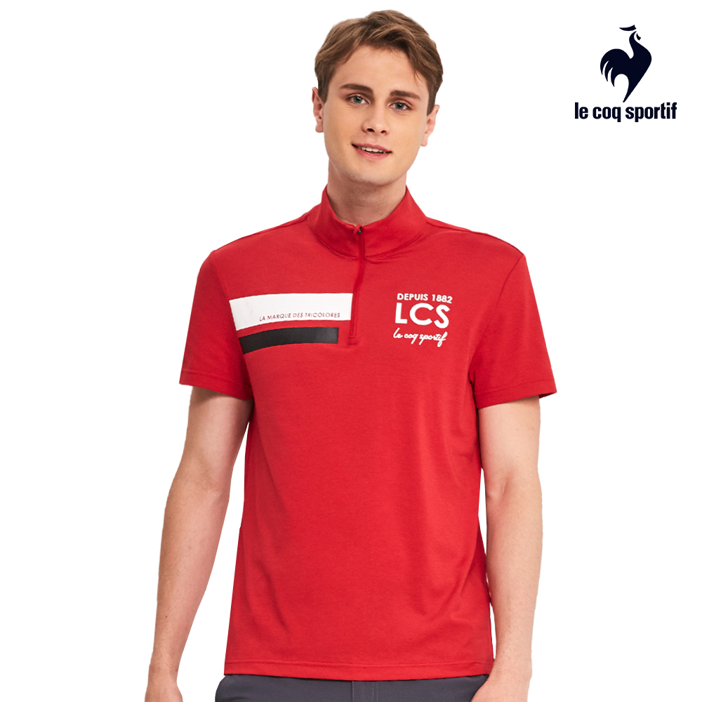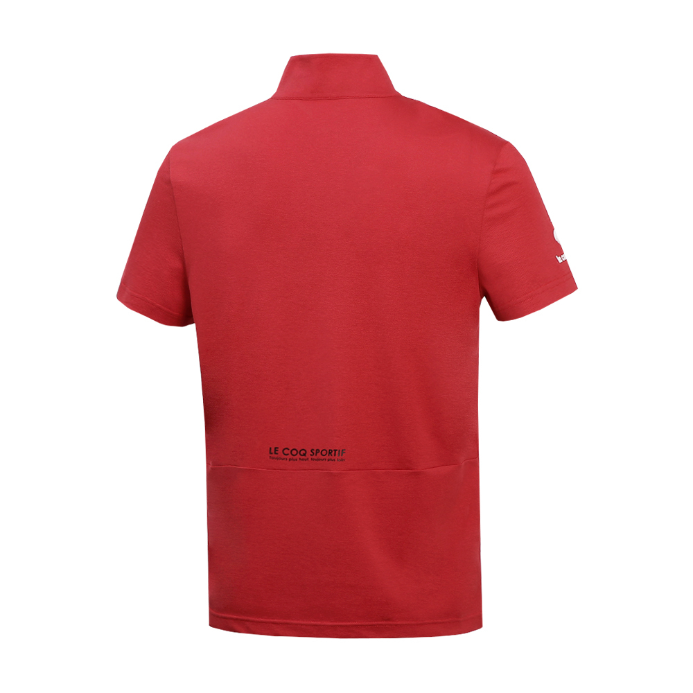 【LE COQ SPORTIF 法國公雞】冰涼紗法式經典短袖立領衫-男款-經典紅色-LWR21643