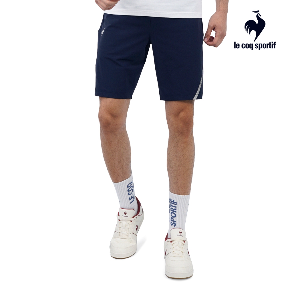【LE COQ SPORTIF 法國公雞】運動基礎針織運動短褲-男款-丈青色-LWT81581