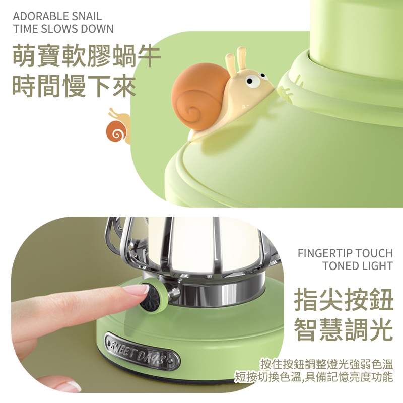 • 小蝸牛復古露營燈 氣氛燈 復古燈 照明燈 充電夜燈 掛燈 露營 提燈 造型夜燈 登山照明燈 野營燈 帳篷吊掛小燈 夜燈