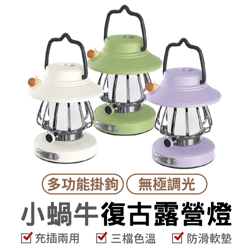 小蝸牛復古露營燈 氣氛燈 復古燈 照明燈 充電夜燈 掛燈 露營 提燈 造型夜燈 登山照明燈 野營燈 帳篷吊掛小燈 夜燈