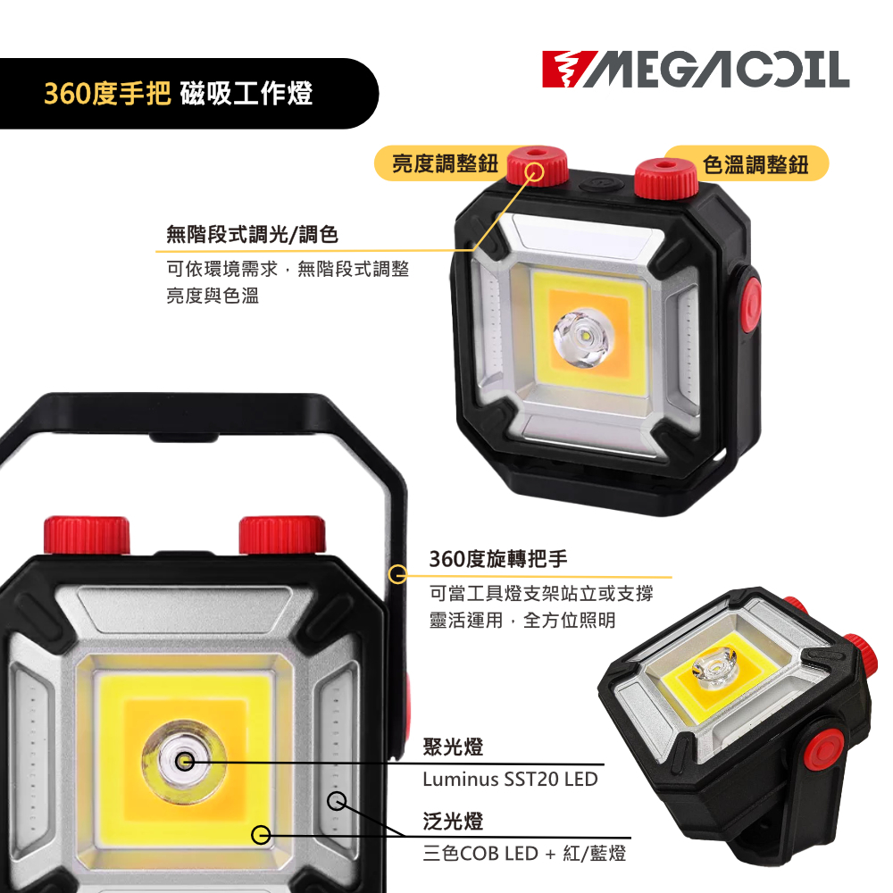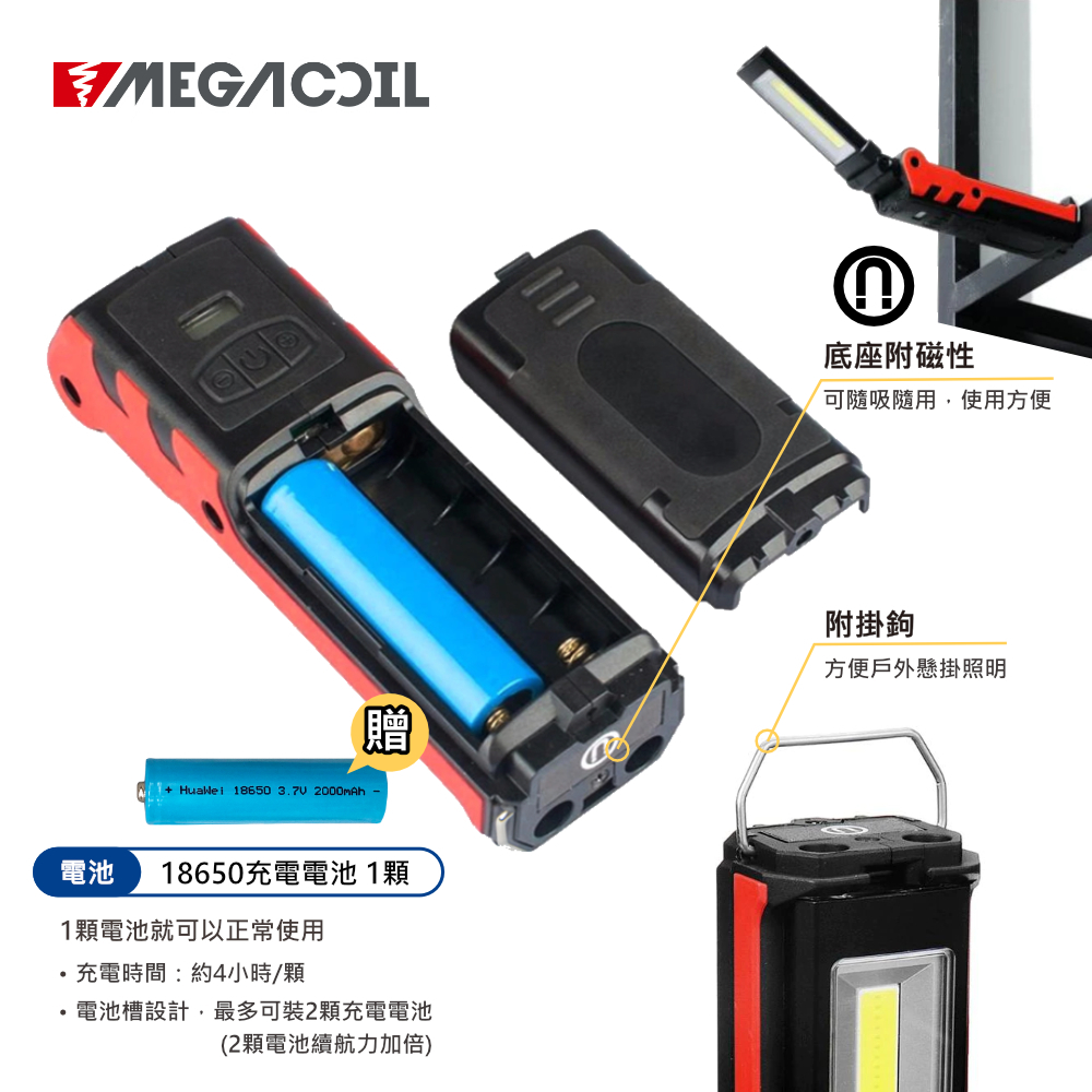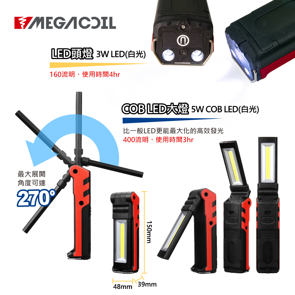 • 【MEGACOIL】摺疊工作燈 360度手把 磁吸工作燈 LED摺疊燈 便攜工作燈 露營燈 手電筒