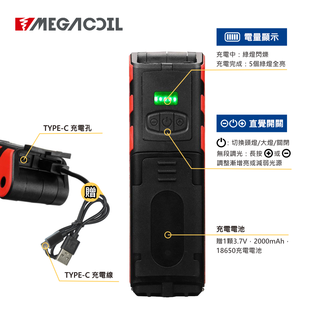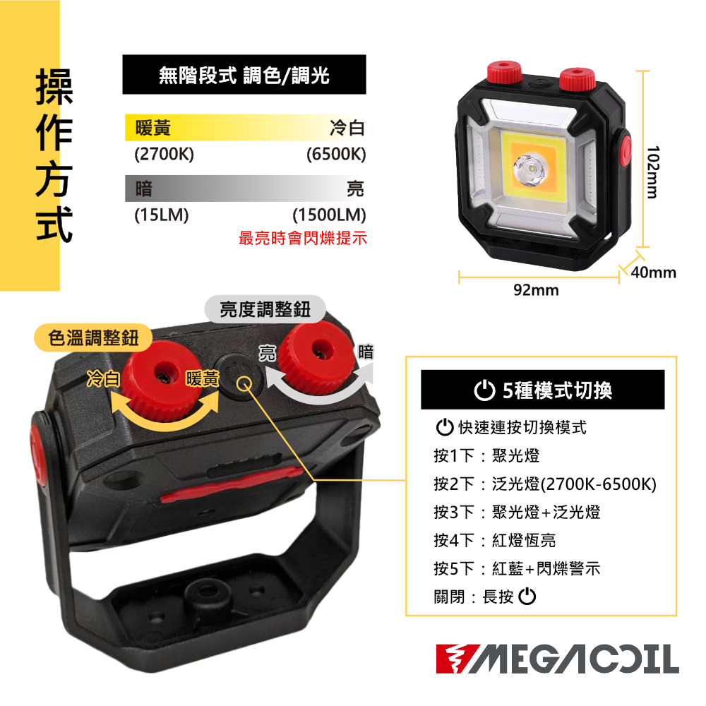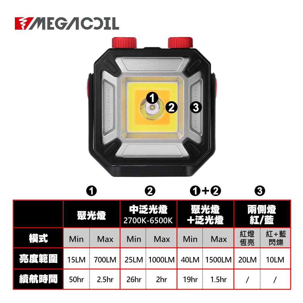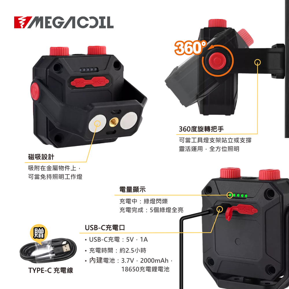 • 【MEGACOIL】摺疊工作燈 360度手把 磁吸工作燈 LED摺疊燈 便攜工作燈 露營燈 手電筒