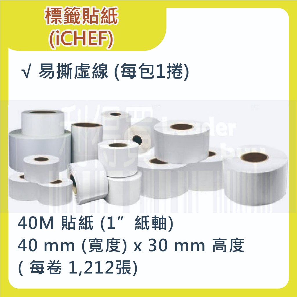 iCHEF專用貼紙 40mmx30mmx40M 每捲1212張 有易撕虛線iCHEF專用貼紙 40mmx30mmx40M 每捲1212張 有易撕虛線Labels & Stickersleaderbuy