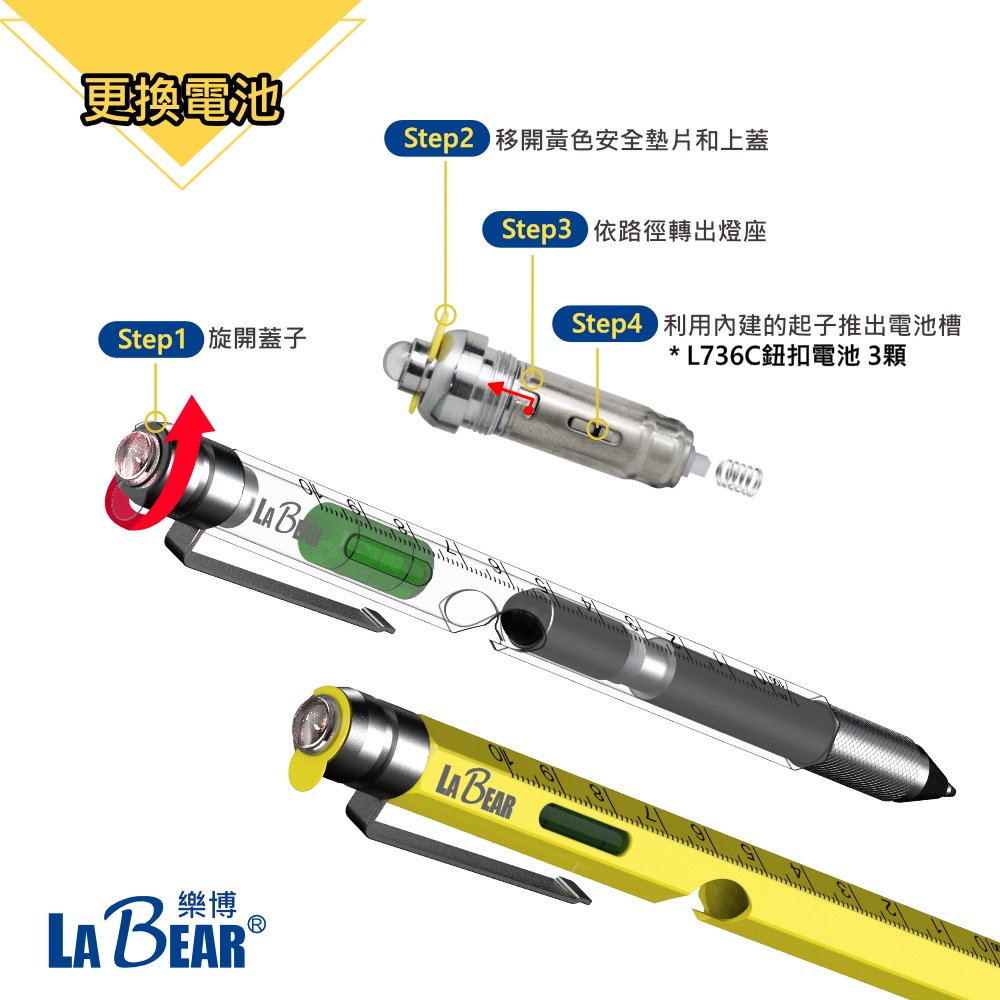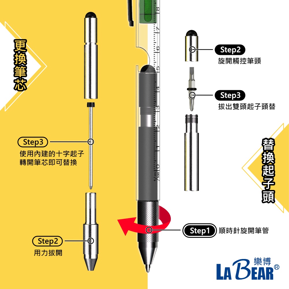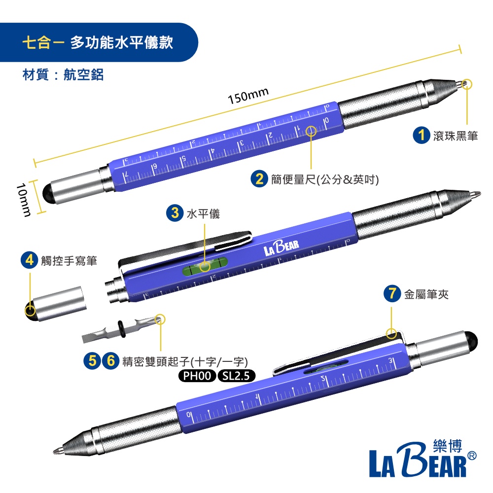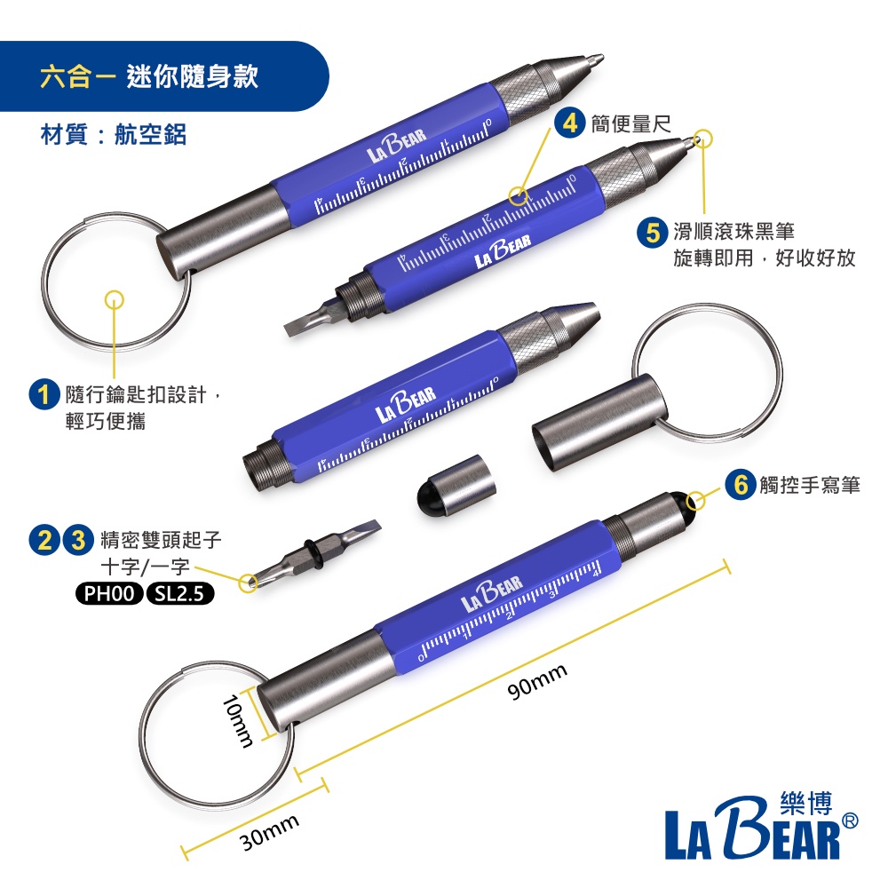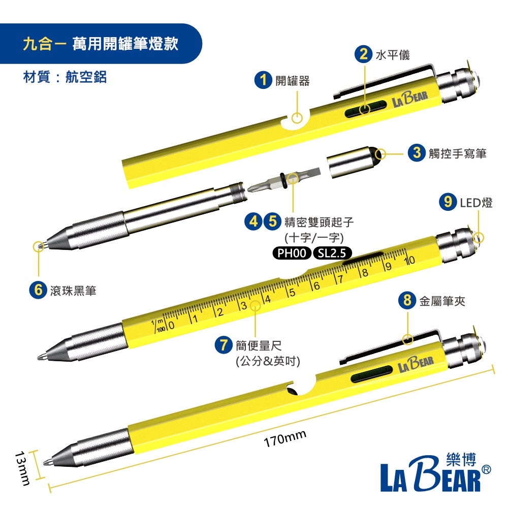 【LaBear】多功能隨身工具筆 水平儀 鑰匙圈筆 金屬筆身 工具筆 工程筆 螺絲起子原子筆 觸控筆 開罐器 LED燈六合ㄧ 迷你隨身款|七合ㄧ 多功能水平儀款|九合一 萬用開罐筆燈款Pens & InksLaBear 樂博工具