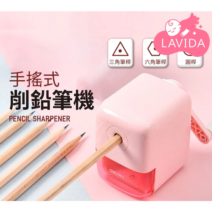 【LAVIDA嚴選】得力手搖削鉛筆機 削鉛筆機 手搖削鉛筆 三角筆桿 六角筆桿 圓桿 鉛筆 色鉛筆藍色|粉色SharpenersLAVIDA 育兒好好玩!