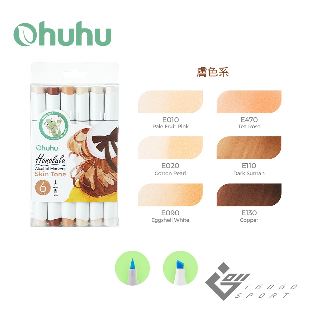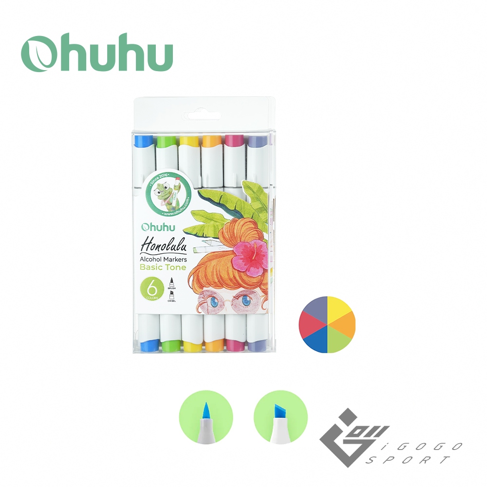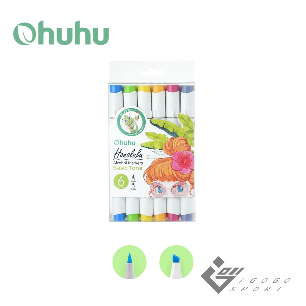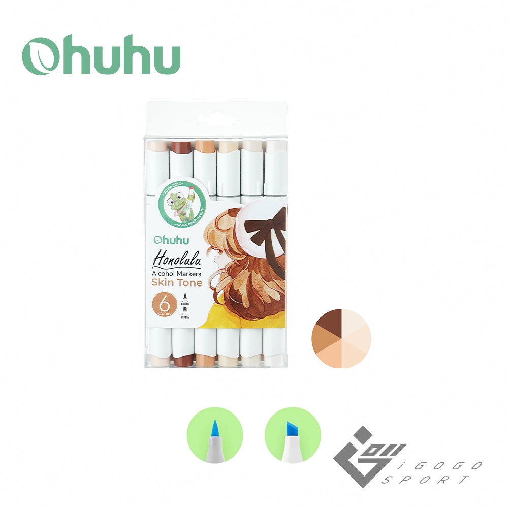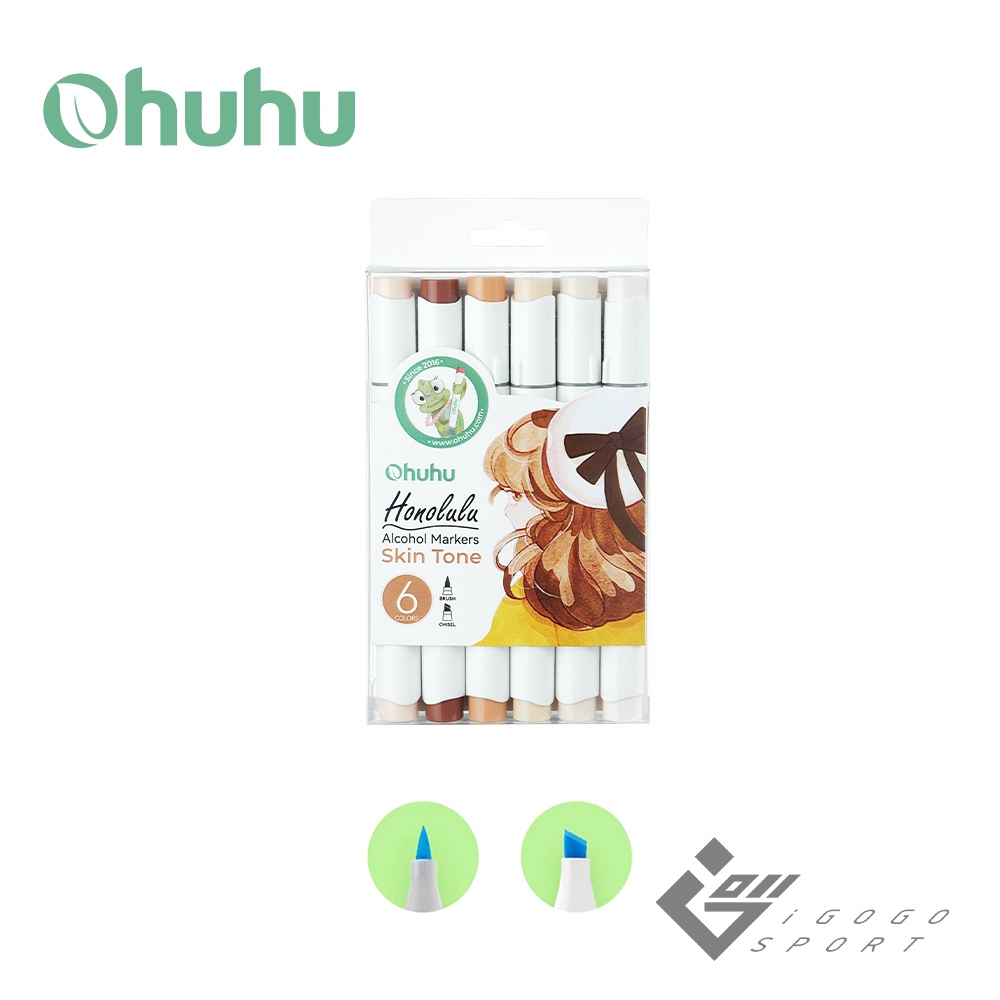 【Ohuhu】Honolulu 6色雙頭酒精性麥克筆套組(三種色系) ( 台灣總代理 – 原廠公司貨 )鮮明色系|柔和色系|膚色系Markersigogosport 官方旗艦店
