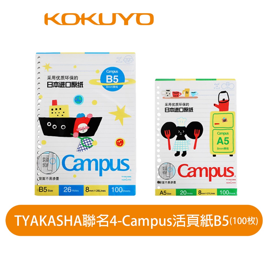 【日本KOKUYO】TYAKASHA聯名系列 Campus活頁紙B5/A5 26/20孔100枚B5|A5Notebooks & NotepadsKOKUYO台灣總代理官方旗艦店