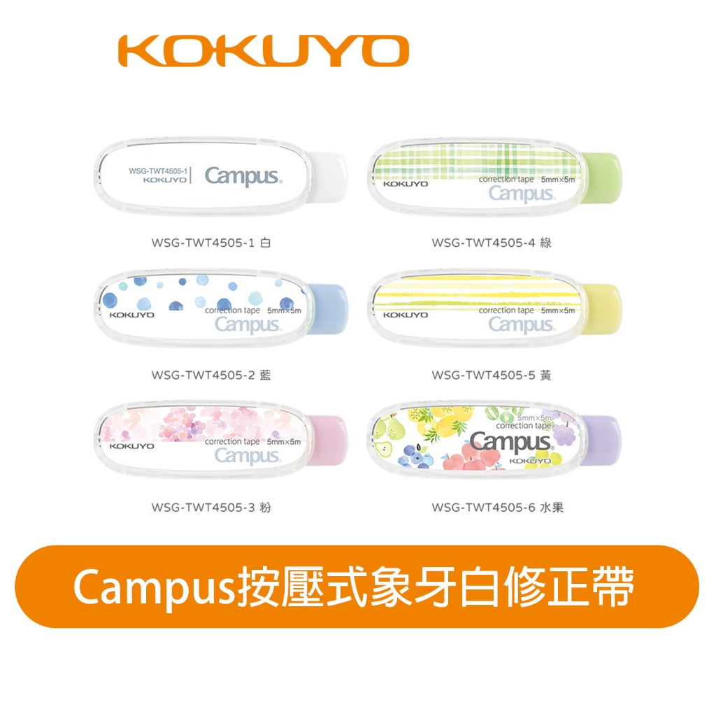 【日本KOKUYO】Campus按壓式象牙白修正帶WSG-TWT4505粉|綠|黃|白|藍|水果Eraser & Correction SuppliesKOKUYO台灣總代理官方旗艦店