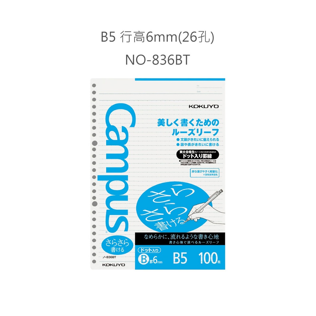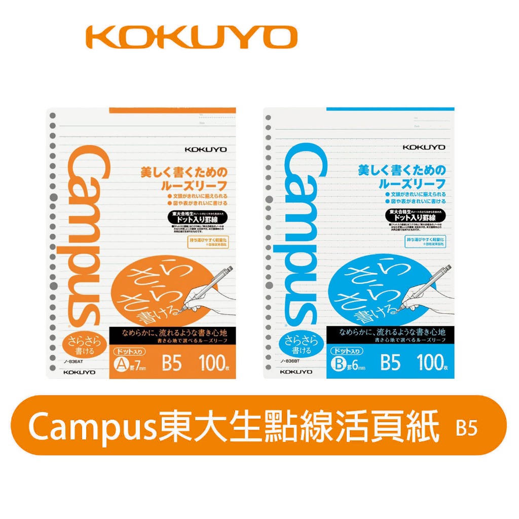 【日本KOKUYO】Campus點線活頁紙 KONO-836AT/BT B5 26孔 熱銷款 日本製 日本東大生最愛用B5 7mm|B5 6mmLoose LeafKOKUYO台灣總代理官方旗艦店