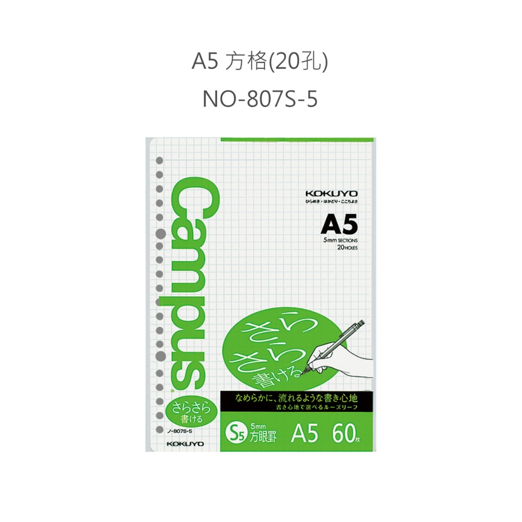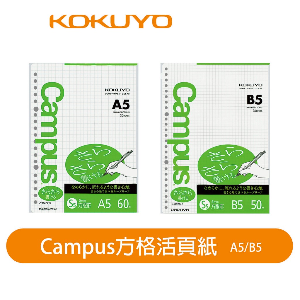 【日本KOKUYO】Campus方格活頁紙5入 A5/B5 KONO-837/807S-5 熱銷款 日本製5入 B5|5入 A5Loose LeafKOKUYO台灣總代理官方旗艦店