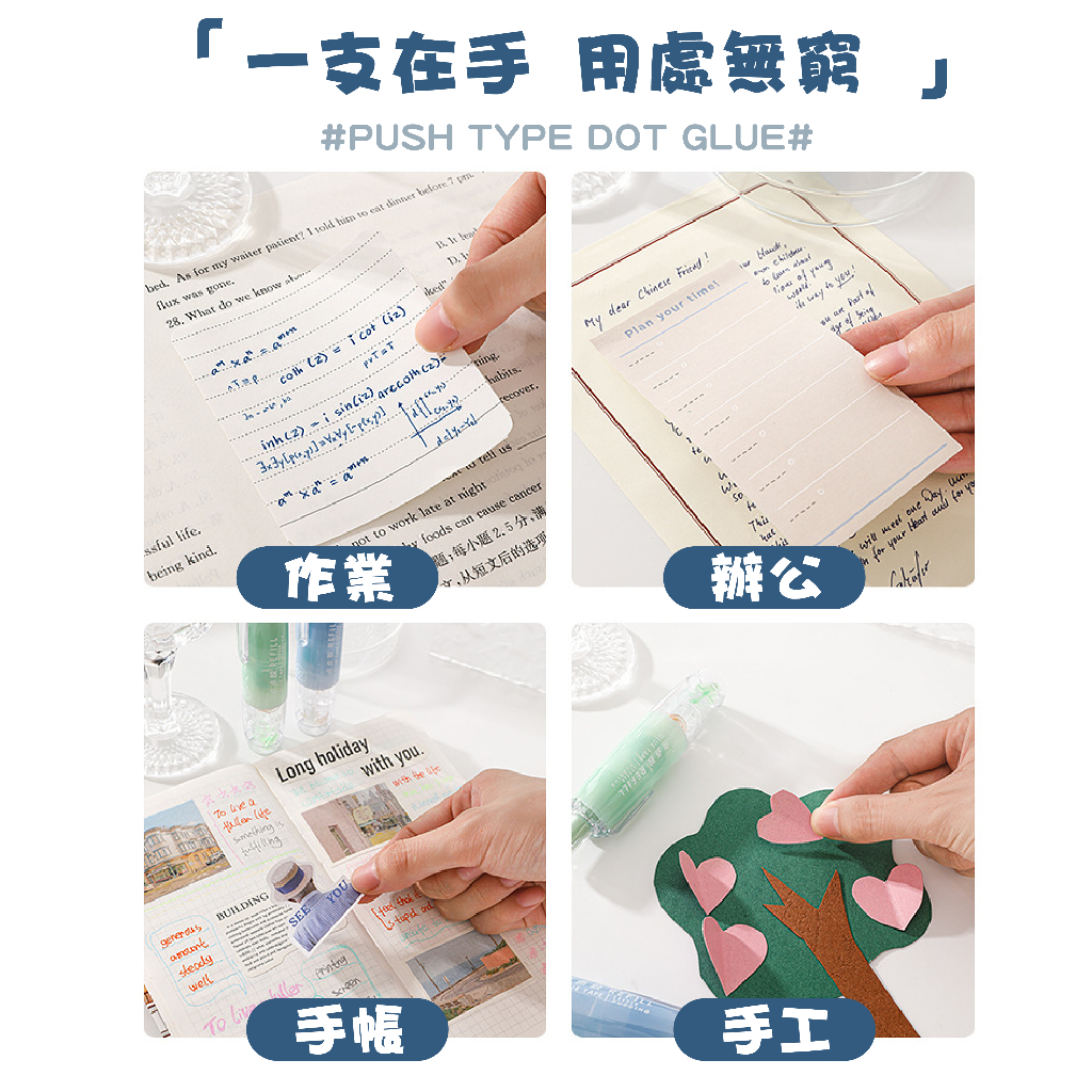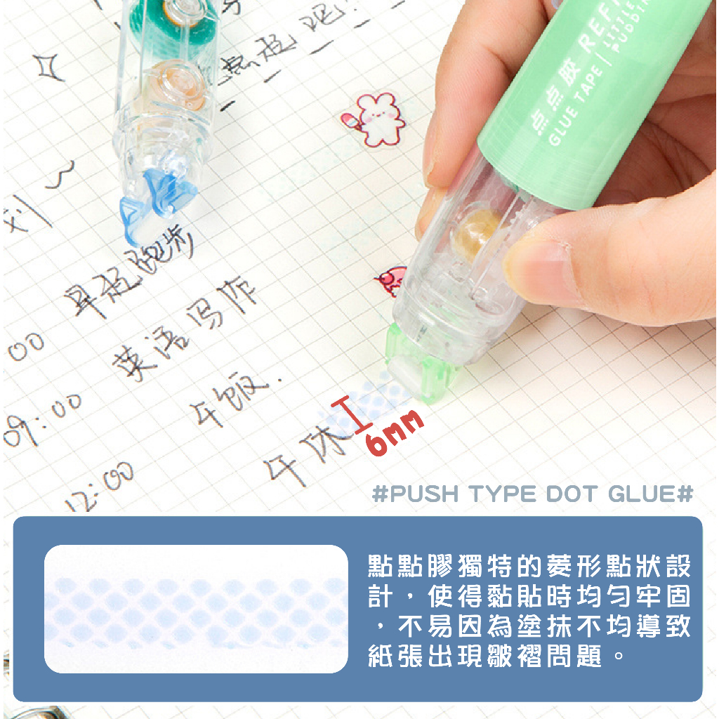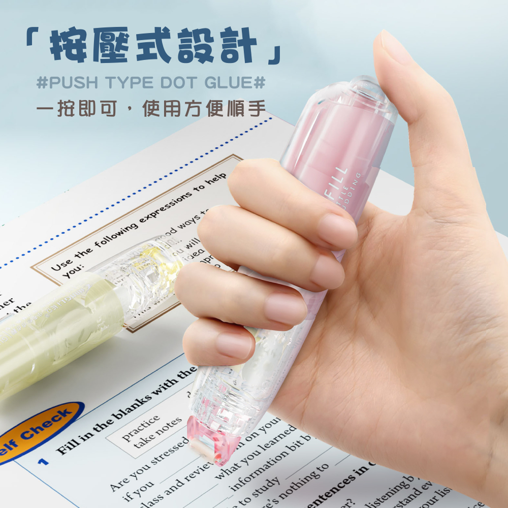 【文具小物】按動式點點膠 雙面膠 點膠筆 點點膠 豆豆貼 膠帶 膠水 速乾無痕膠 手帳工具 按動式 手帳筆杏色|藍色|粉色|白色|綠色|替換芯Strings & TapesLAVIDA 育兒好好玩!